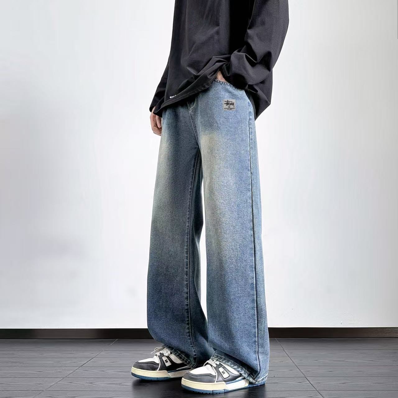 Stussy 斯图西 海外版限定个性褶皱工艺直筒脏脏裤阔腿裤 358504