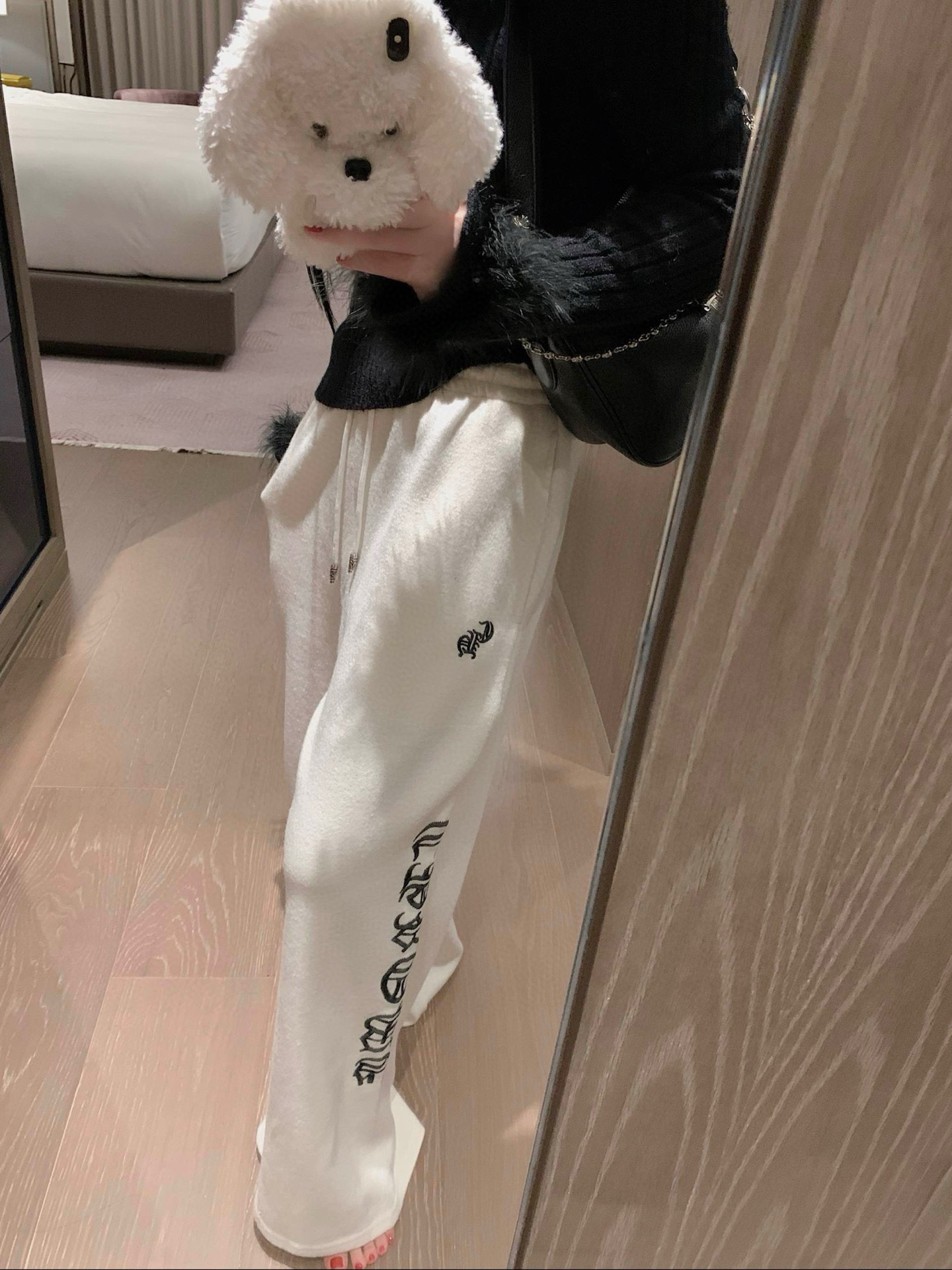 Chrome Hearts 克罗心CH梵文刺绣抽绳羊毛休闲裤 360370