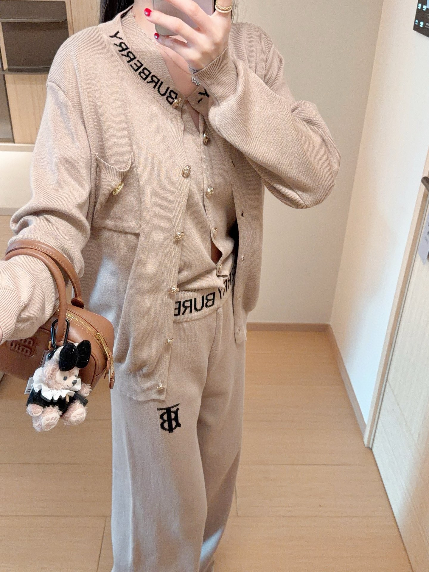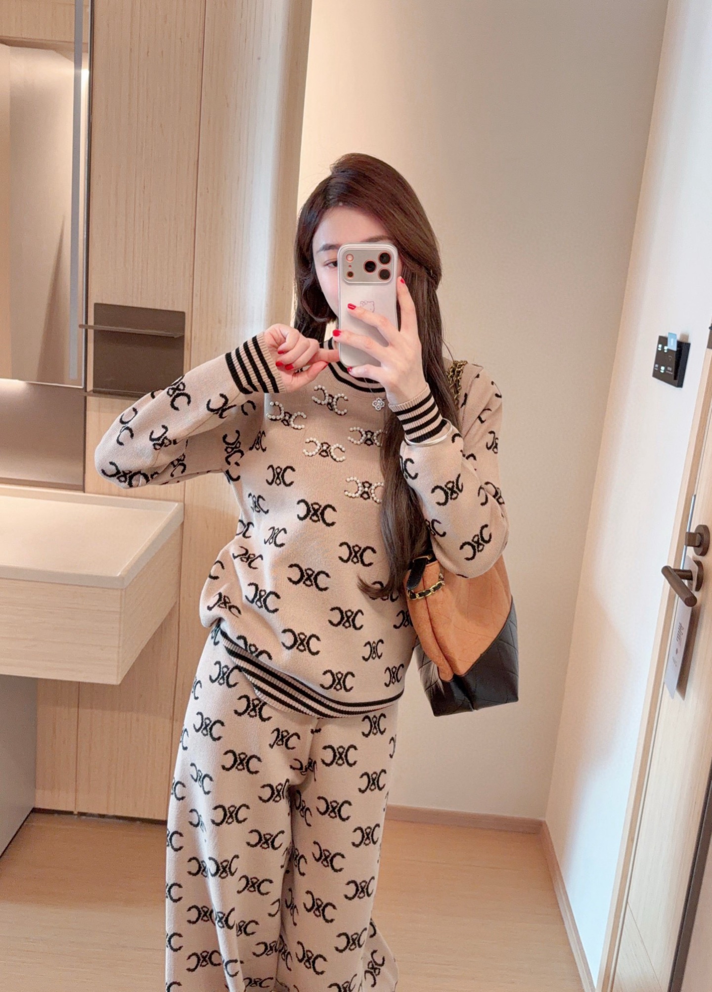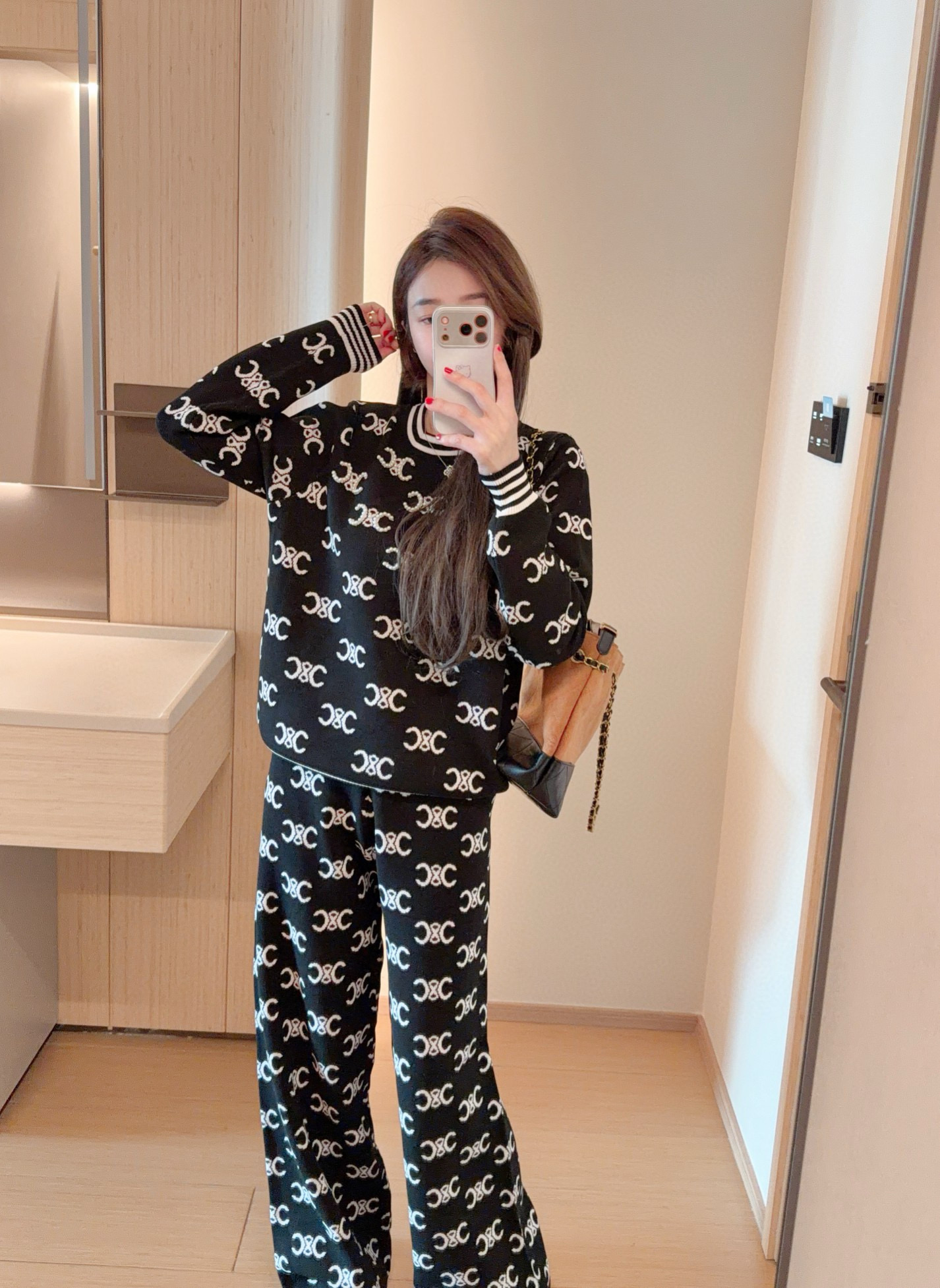 Celine赛琳凯旋门提花钉珠圆领长袖上衣长裤两件套针织套装 360393