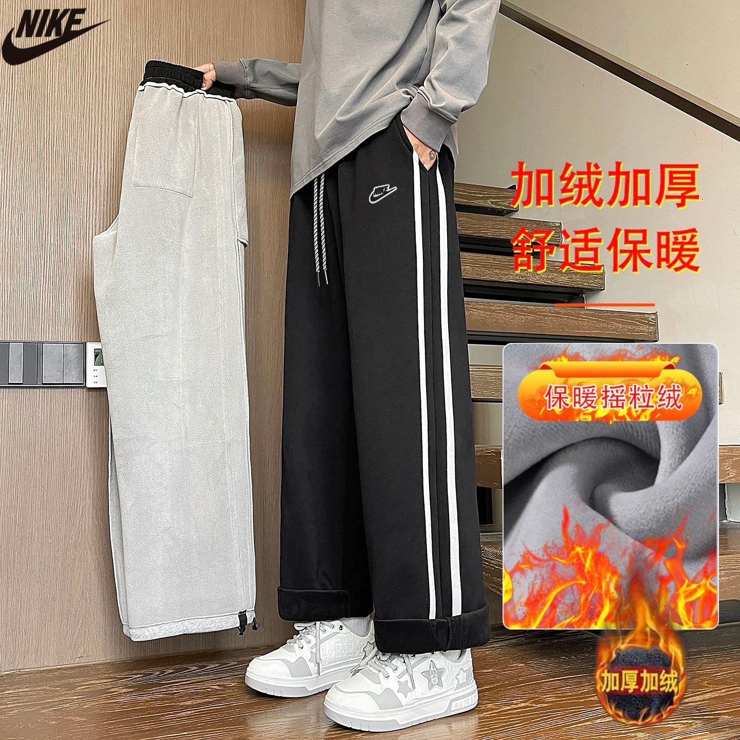耐克Nike冬季新款 男女同款加绒加厚摇粒绒保暖休闲卫裤 男 428976
