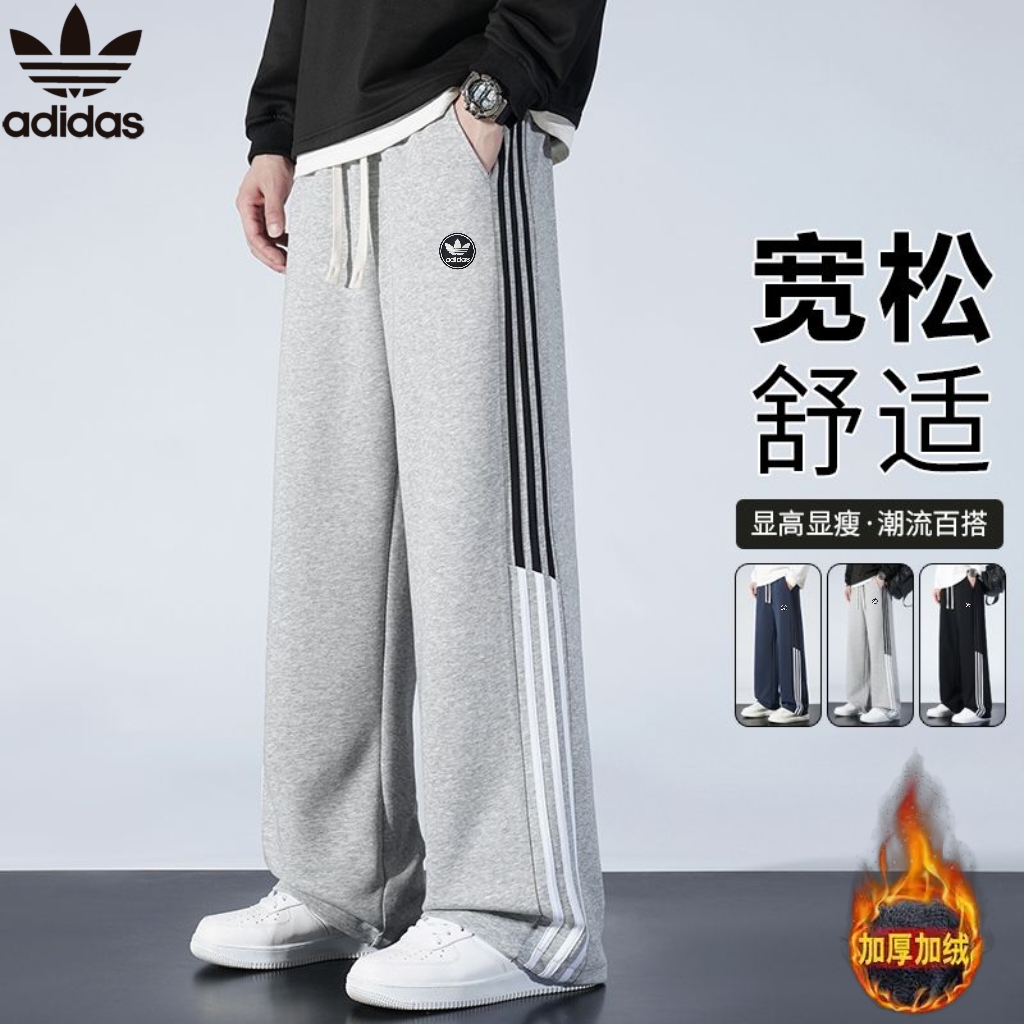 阿迪达斯Adidas冬季新款 男女同款松紧腰抽绳侧边条纹加绒 428978