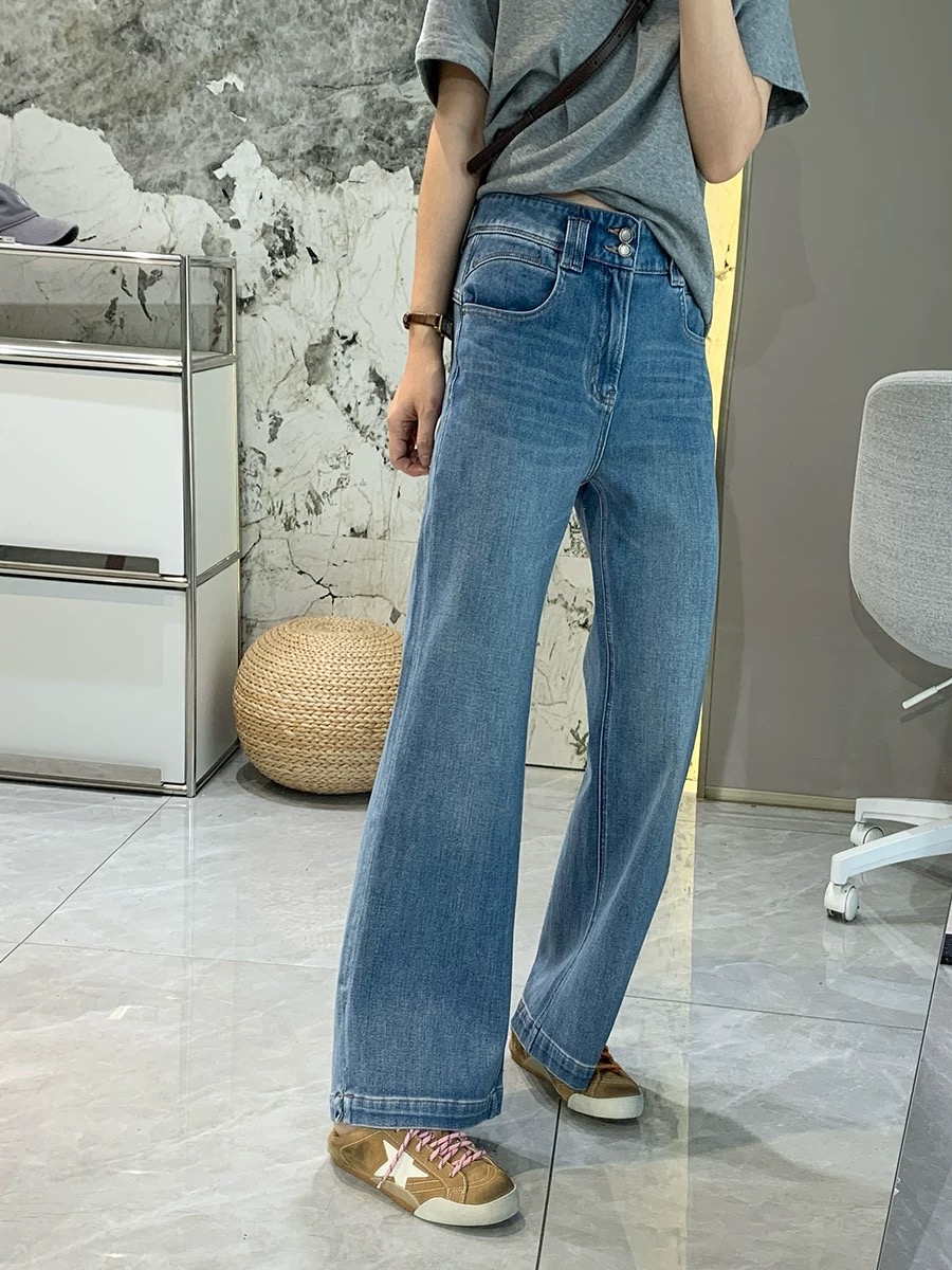 双版本裤长 26春季新款显瘦直筒微喇牛仔裤女宽松不贴腿喇叭裤 576369