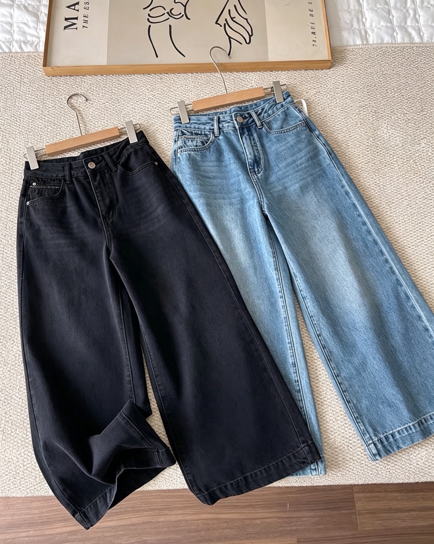 春季韩系复古黑灰色阔腿牛仔裤显瘦高腰宽边直筒裤十分裤长裤女 576390