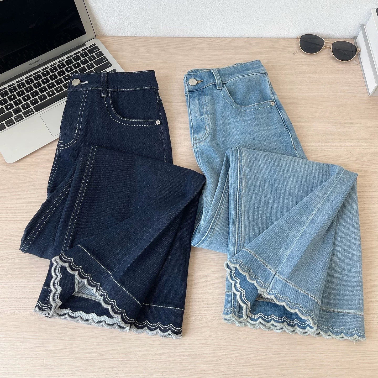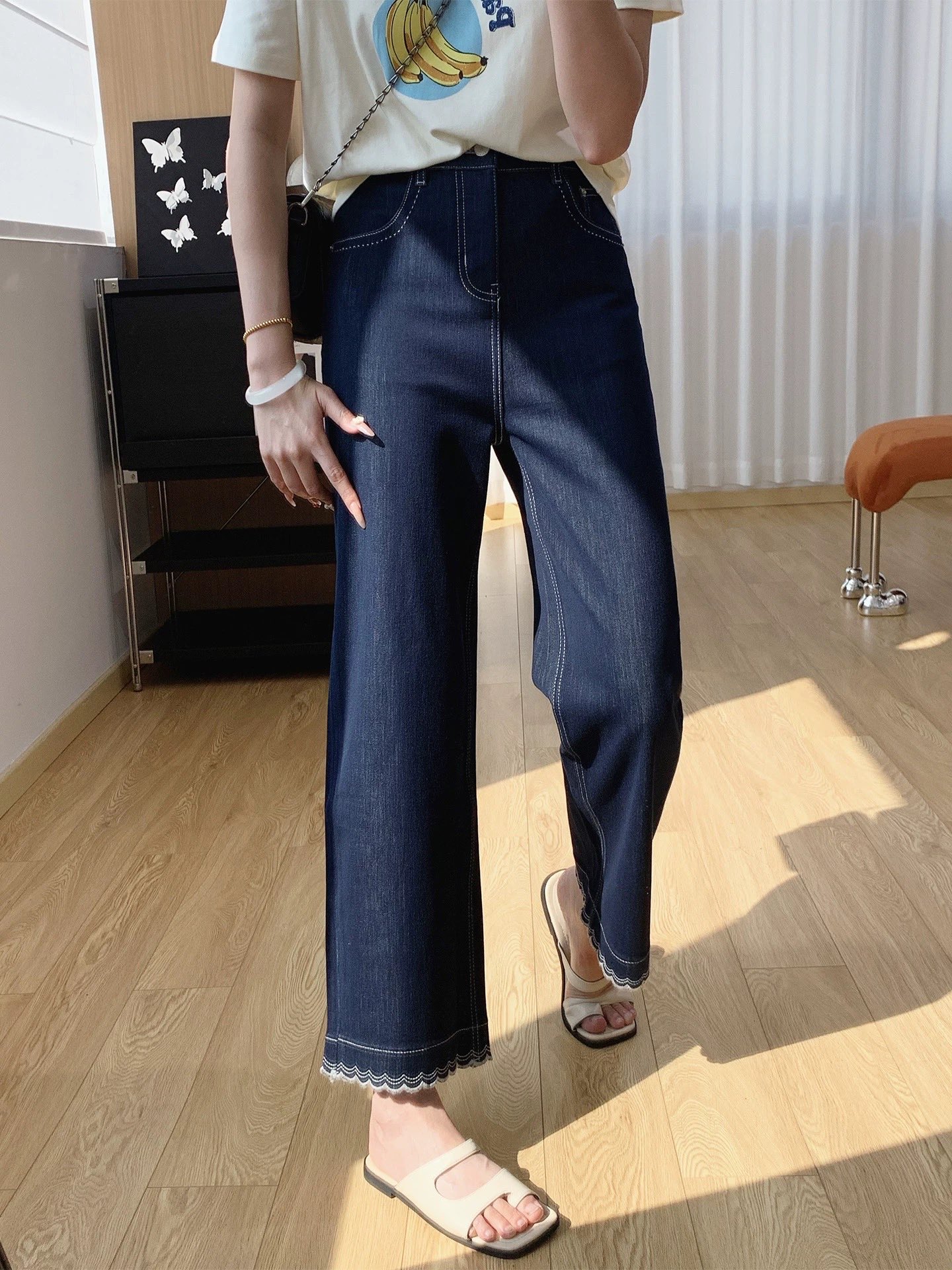 本命梨形裤 立裁双纱弯刀牛仔裤女 春季双版本宽松显瘦阔腿牛仔 576422
