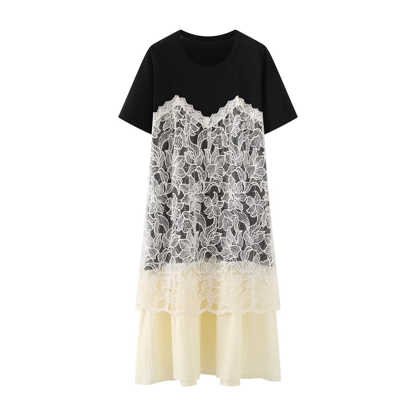 批 法式蕾丝吊带裙叠穿正肩连衣裙2026夏季新款假两件t恤裙 576384