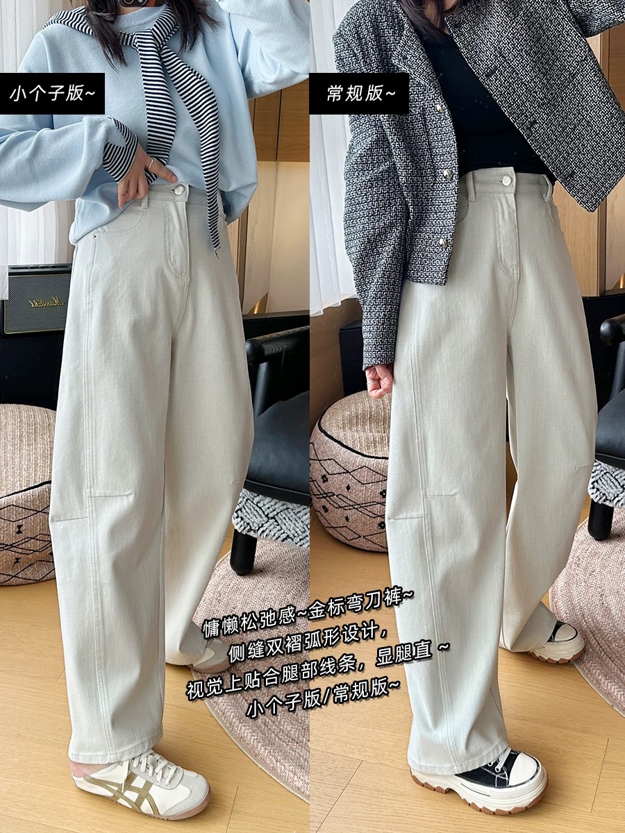 本命梨形裤 立裁双纱弯刀牛仔裤女 春季双版本宽松显瘦阔腿牛仔 576423