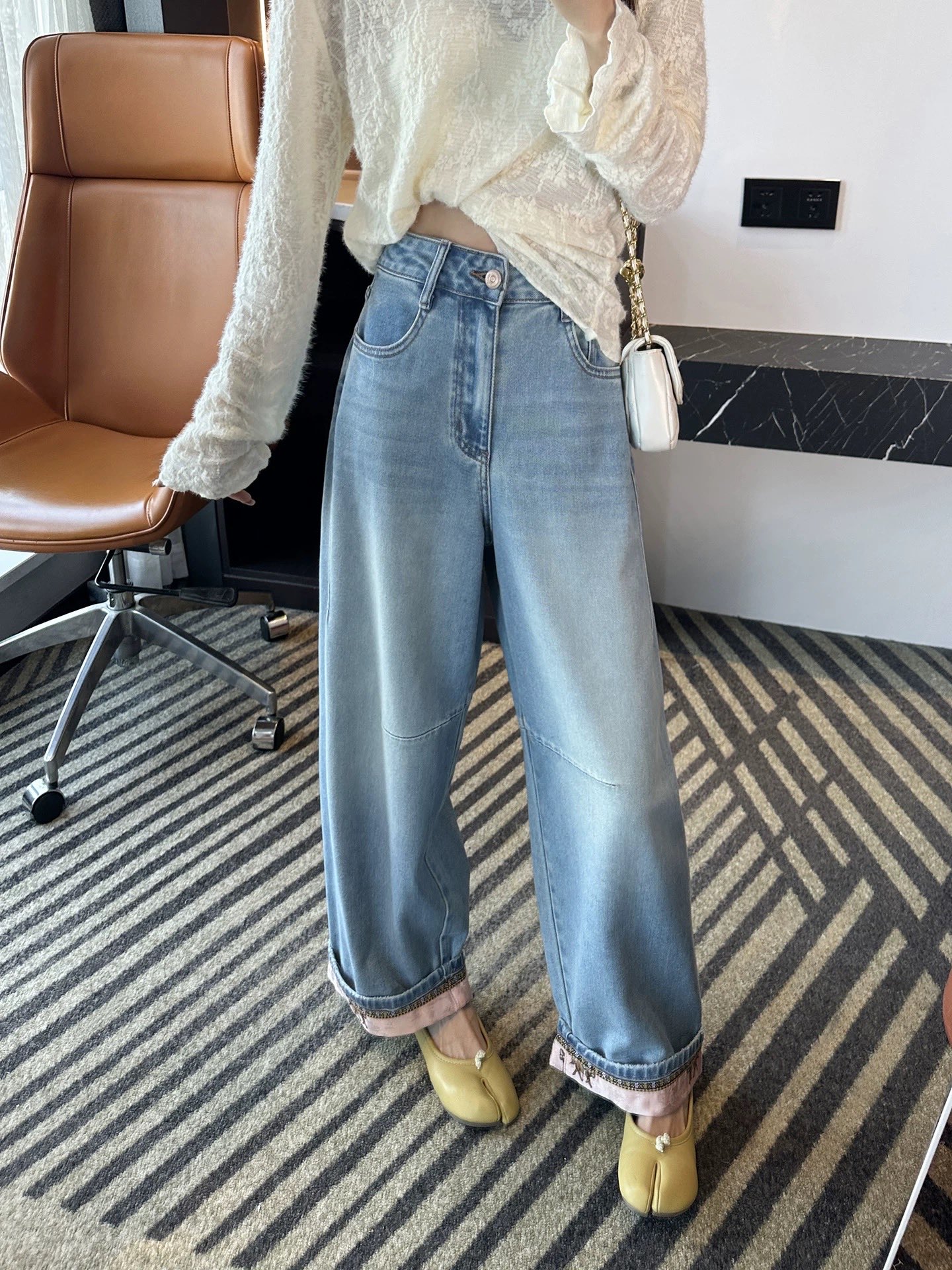 版型巨时髦 脚口拼接刺绣哈伦牛仔裤2026新款女小个子宽松阔 576429