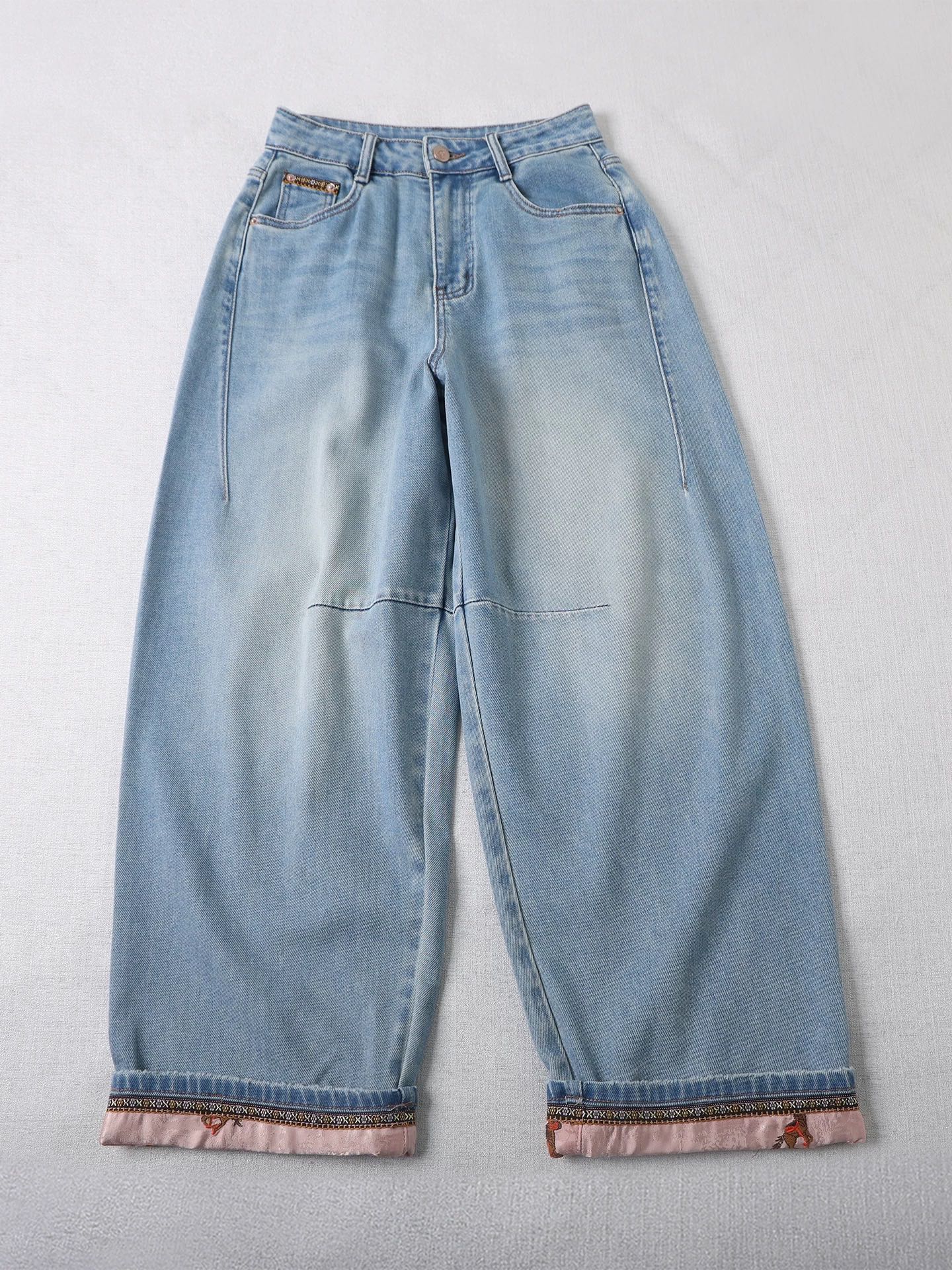 版型巨时髦 脚口拼接刺绣哈伦牛仔裤2026新款女小个子宽松阔 576428