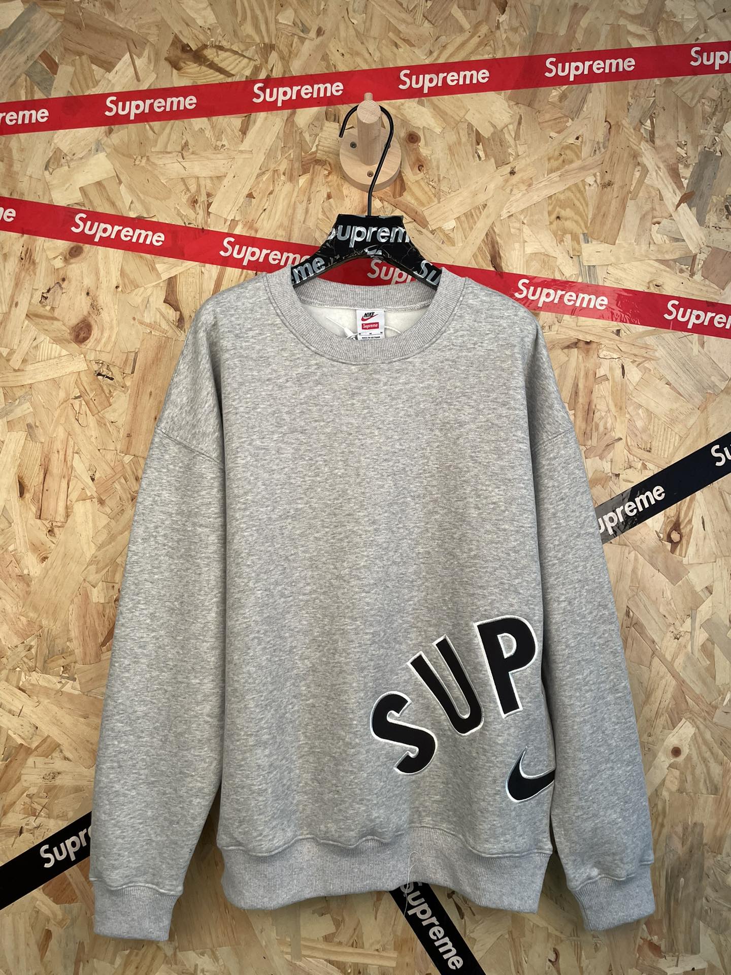 su reme x nike刺绣加绒圆领卫衣长袖T恤