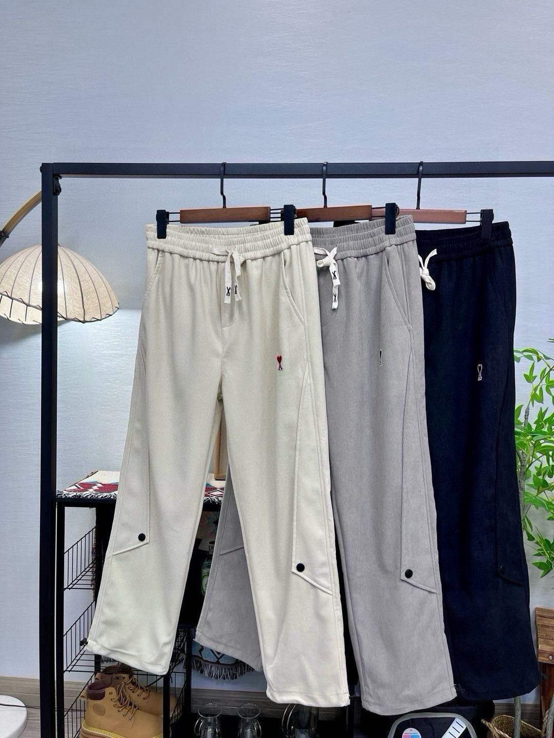 ami刺绣加绒加厚直筒裤卫裤