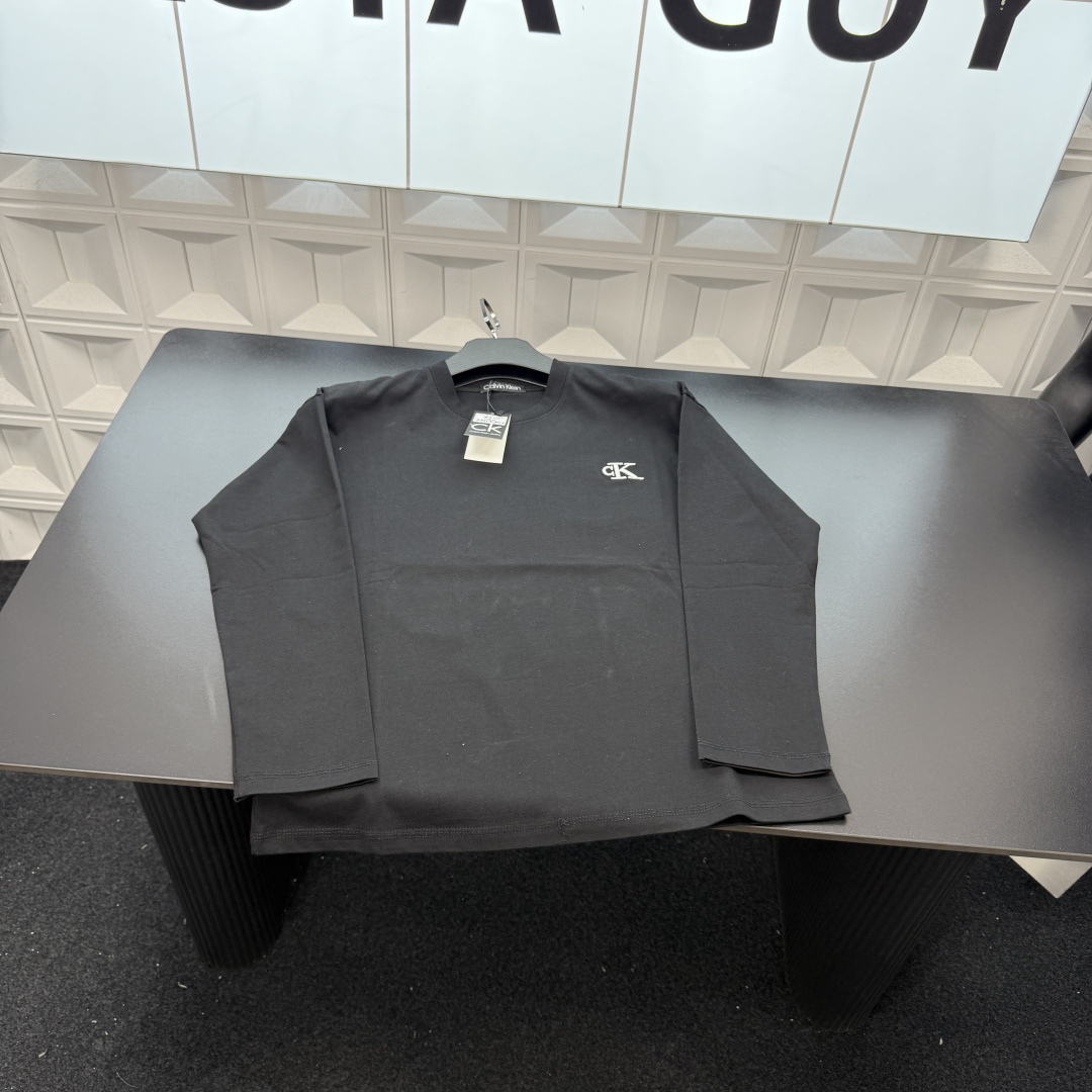 春季新款上新爆炸输出CK长袖T恤打底衫 胸前刺绣字母小Log 418157