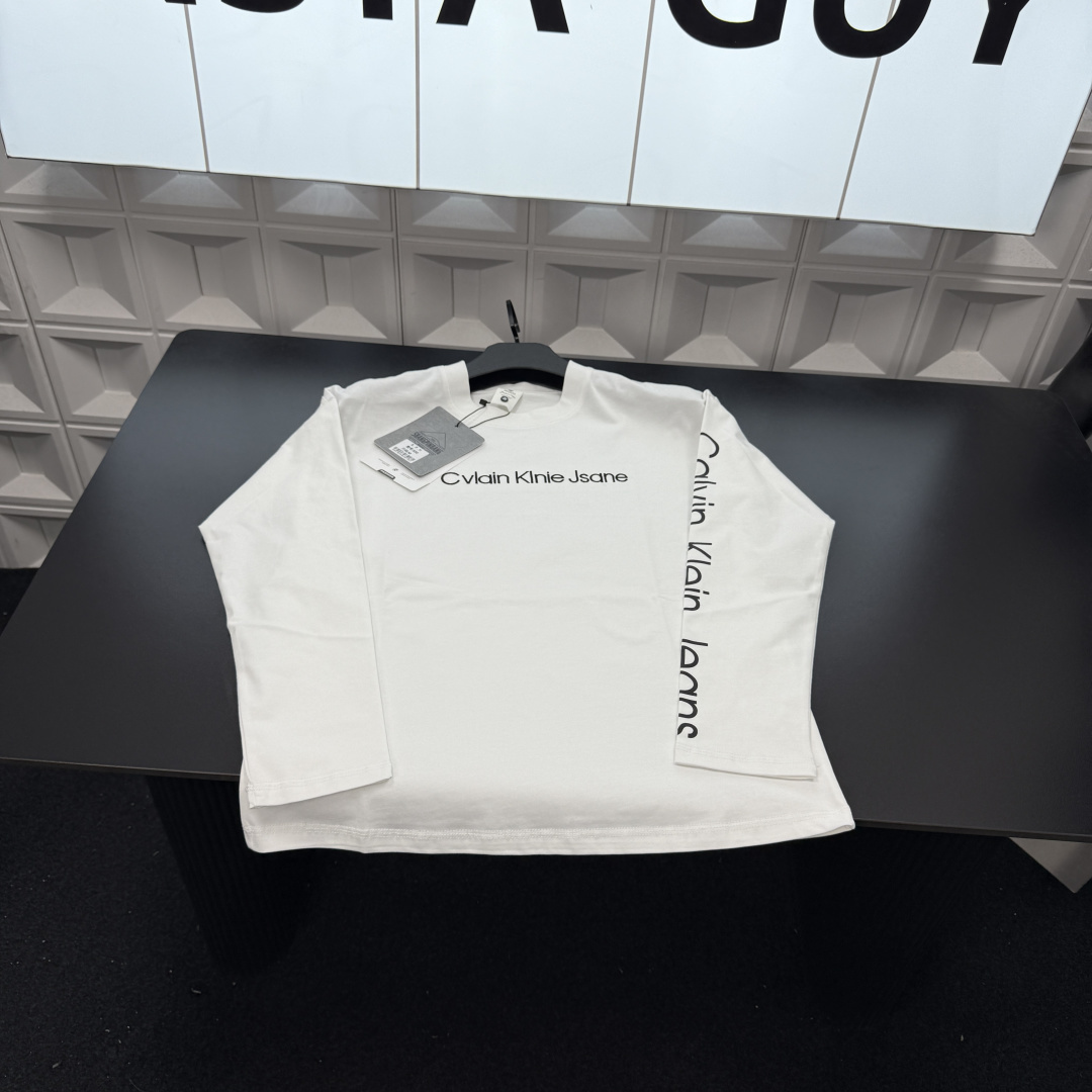 春季新款上新爆炸输出CK长袖T恤打底衫 刺绣字母小Logo 418155