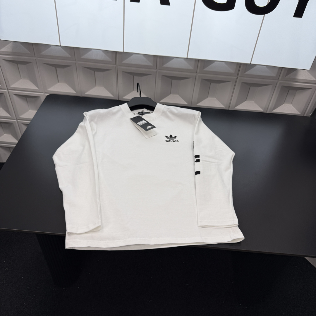 冬季热销爆款网红博主推荐款AD阿迪达斯加绒长袖T恤 胸前刺绣 396006