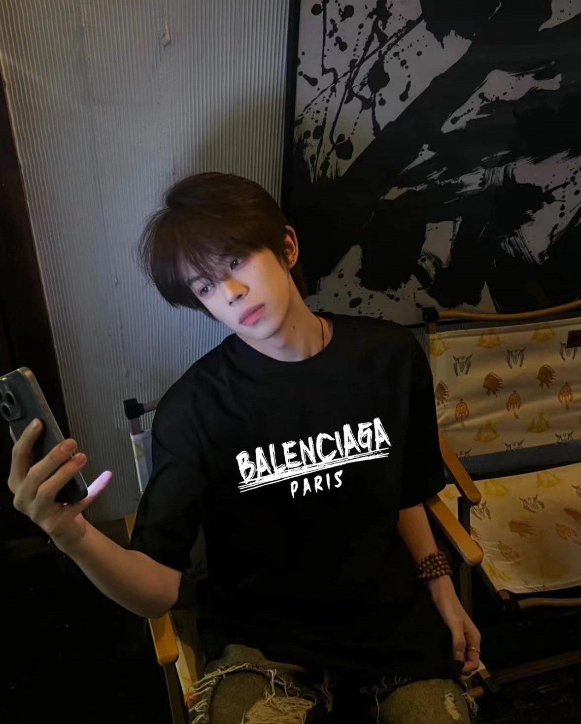 Balenciaga巴黎世家泼墨圆领短袖半袖T恤