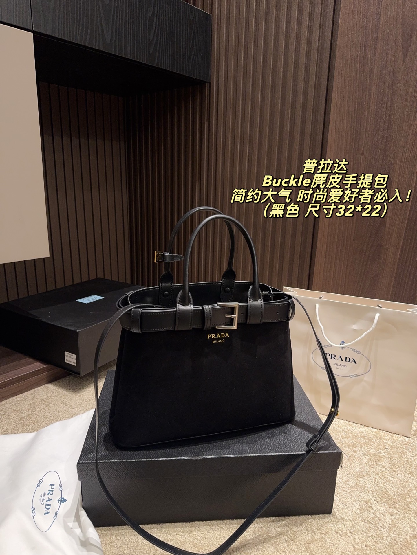 Prada 普拉达 Buckle麂皮 370947