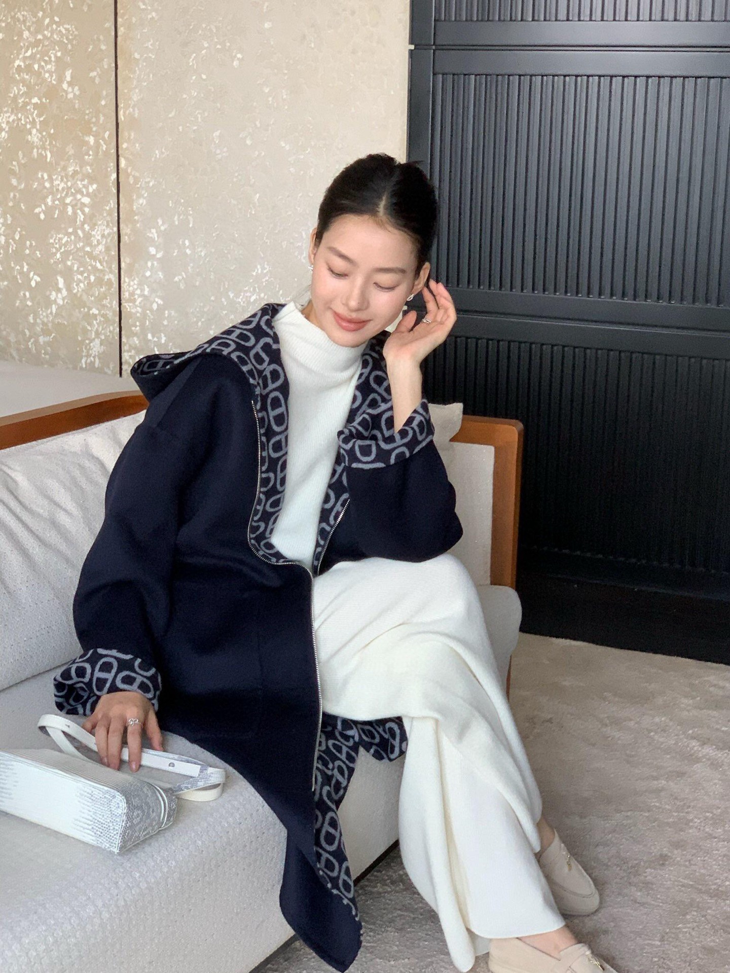Hermes爱马仕定制拉链猪鼻子双面连帽大衣配腰带