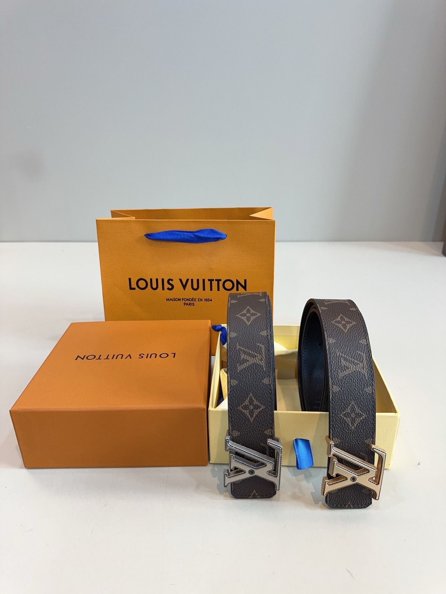 男士好礼 专柜同步 路易威登LV棕色带身 银色方扣皮带 男士 418348