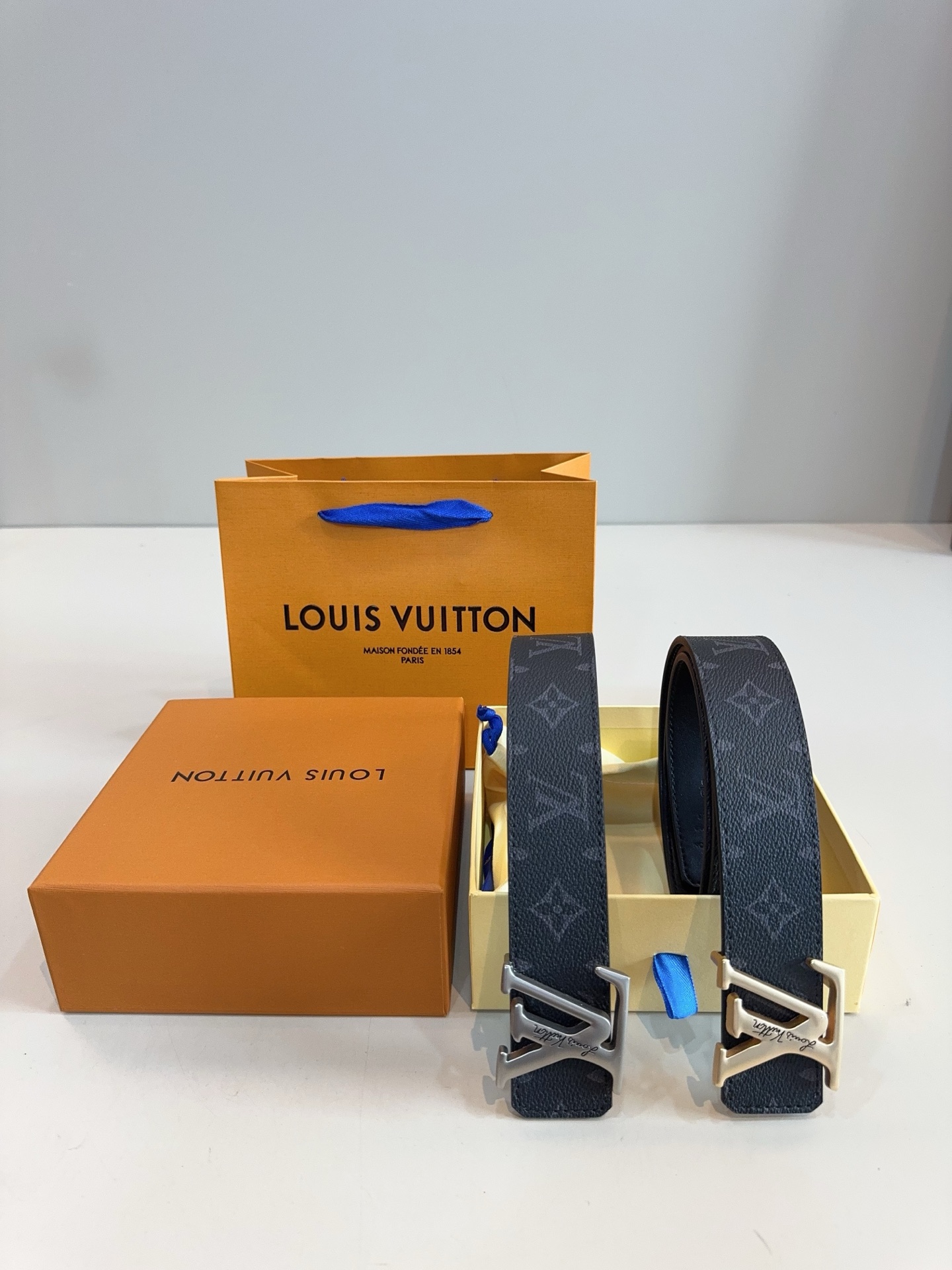 男士好礼 专柜同步 路易威登LV黑色经典高温印花银色扣皮带 423953