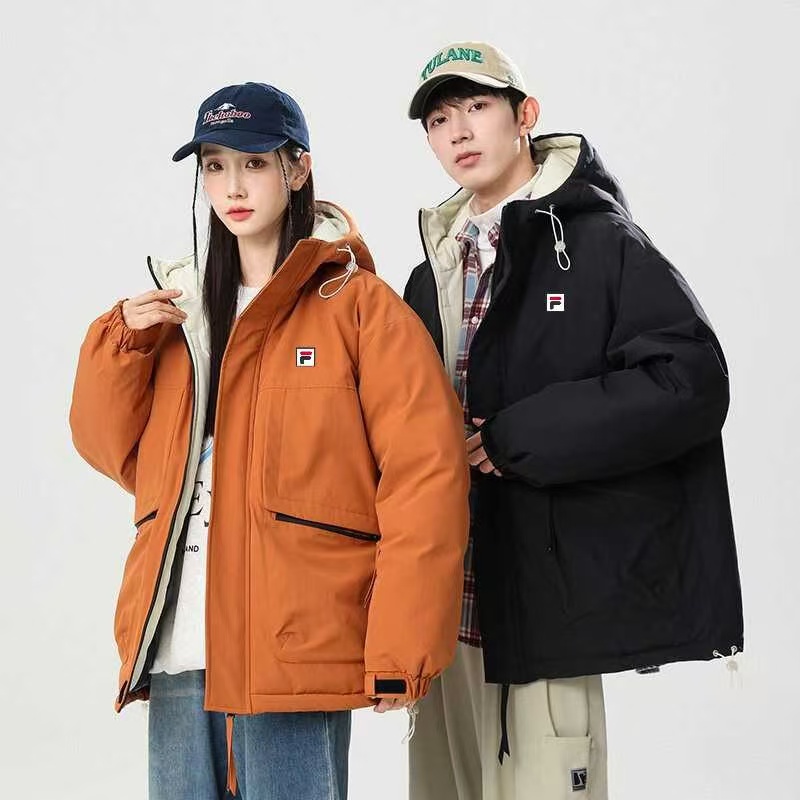 FILA 斐乐冬季户外同色拼接连帽加厚情侣款 351404