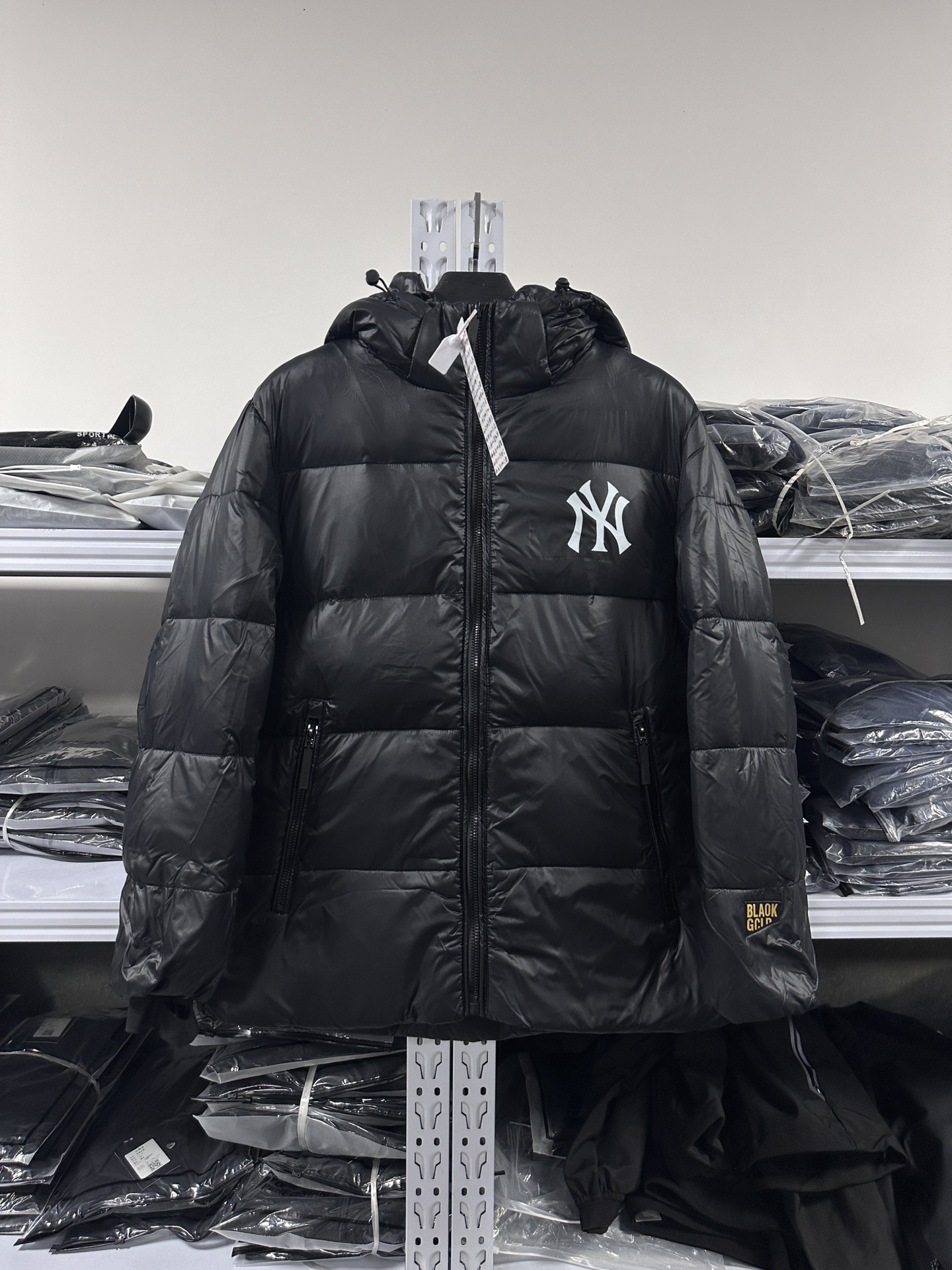洋基队2022ss新款连帽假两件羊羔毛羽绒棉服胸前ny小标印 352410