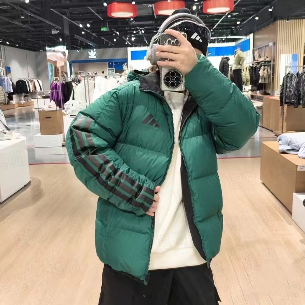 白鸭绒奶茶咖色美式阿迪达斯Adidas连帽羽绒服加厚面包服 403656