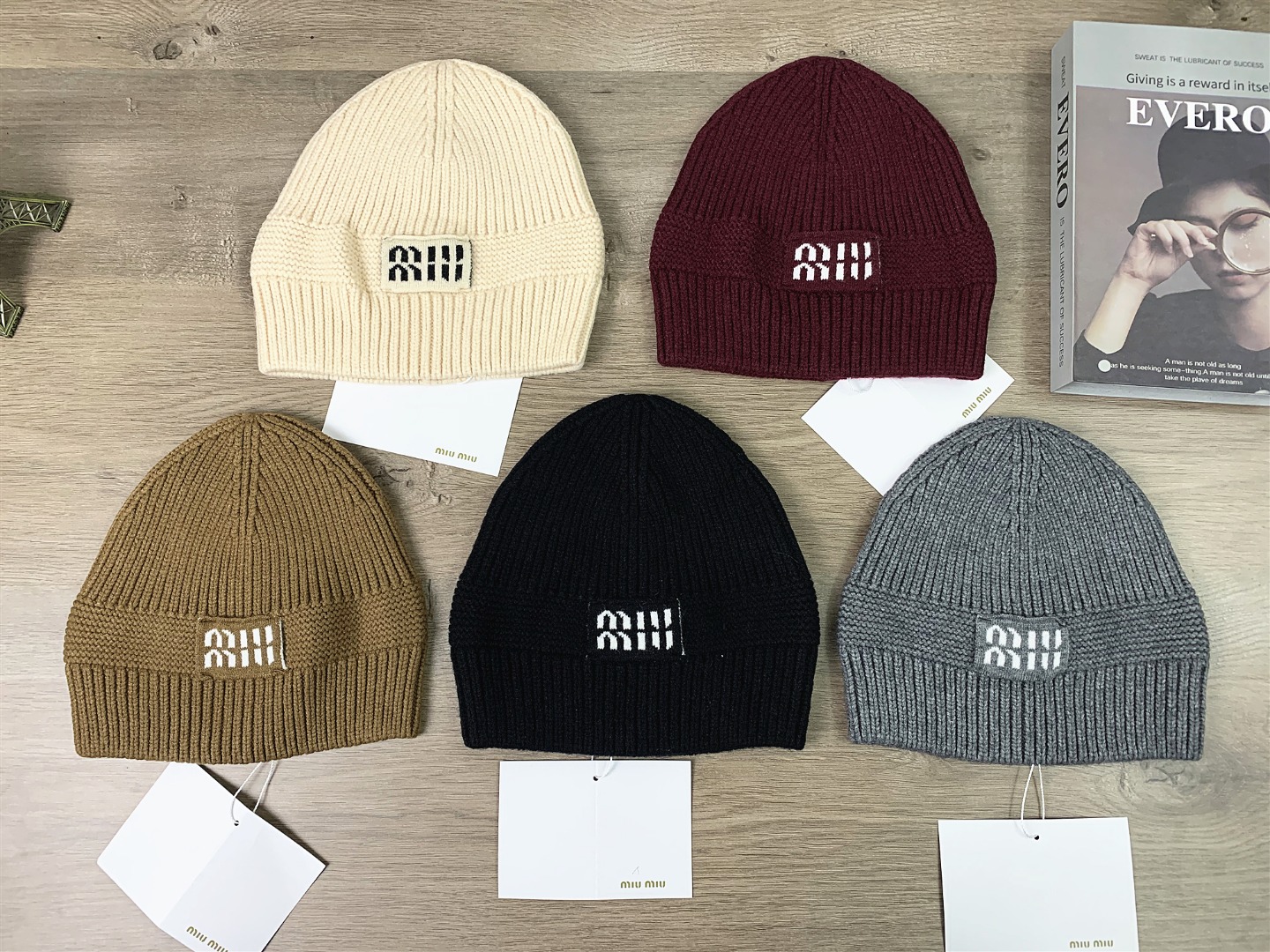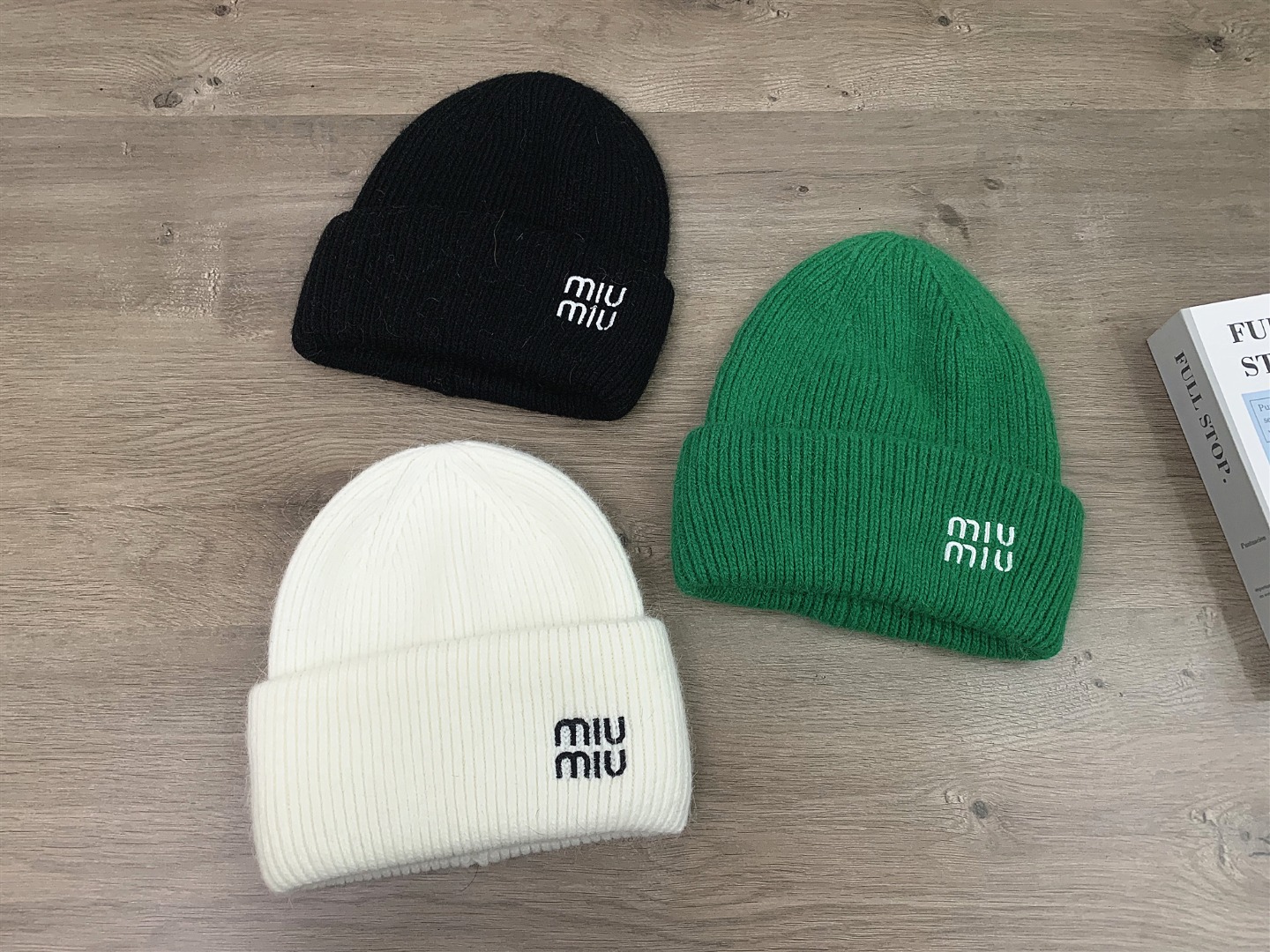 MIUMIU针织帽秋冬毛线帽侧标字母刺绣显脸小男女百搭帽子