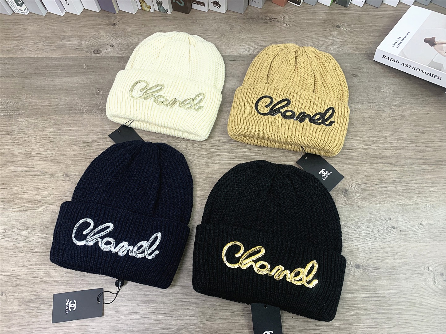 CHANEL香奈儿厚款大针织帽字母贴片绣花秋冬保暖毛线帽男女
