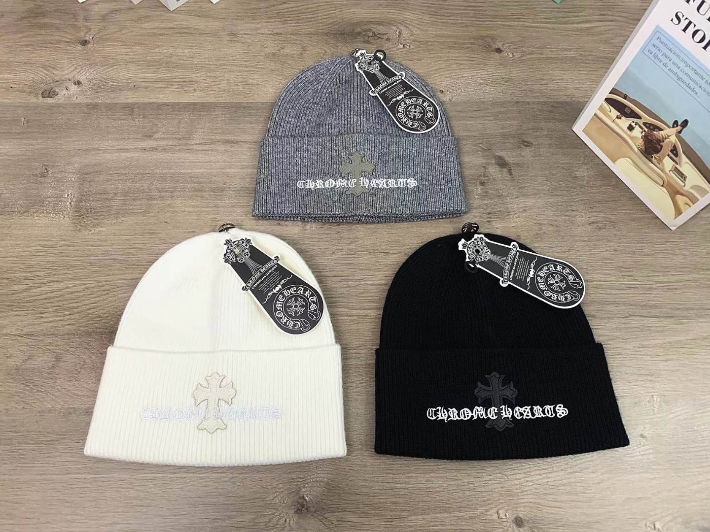 克罗心毛线帽秋冬针织帽刺绣十字架显脸小百搭男女同款情侣帽子