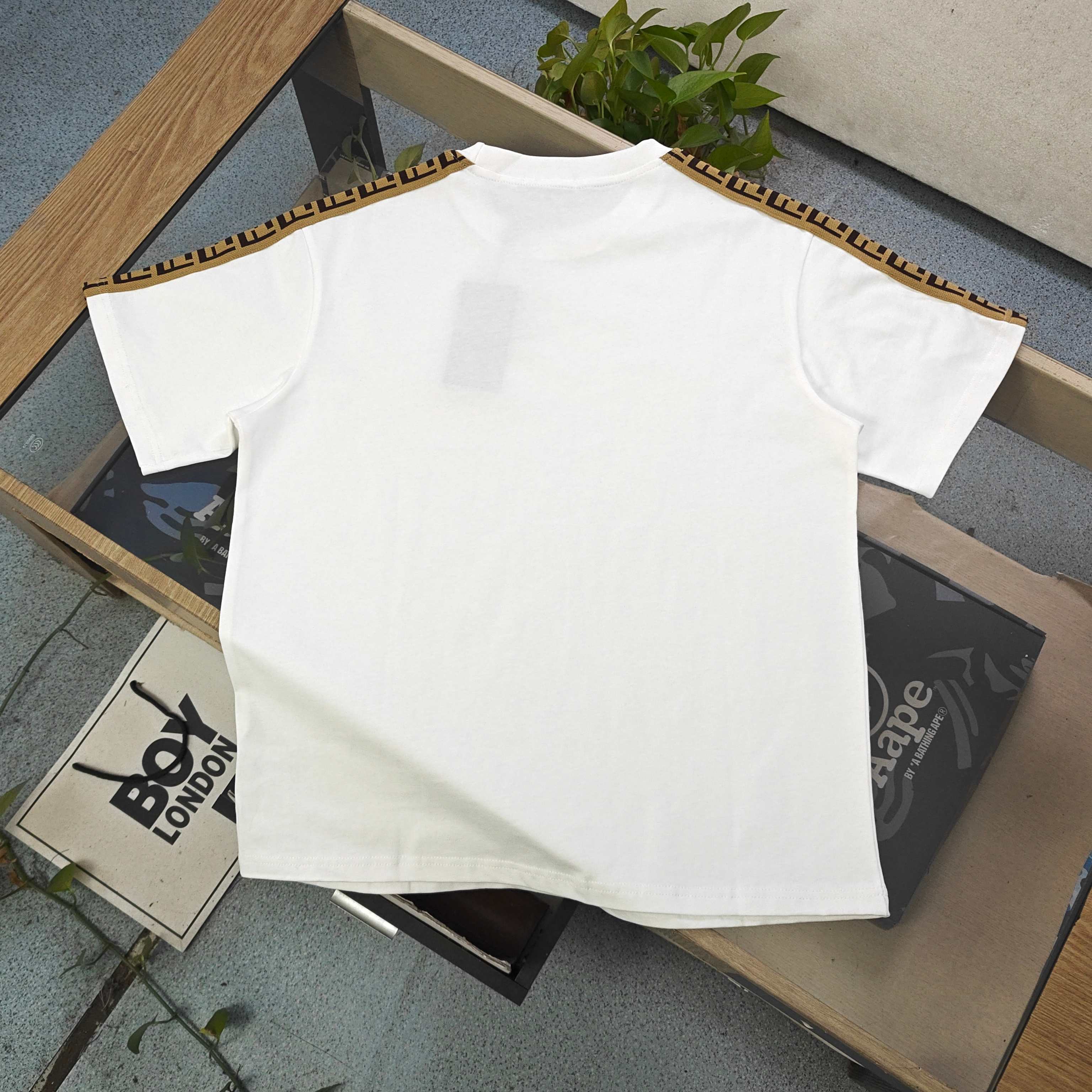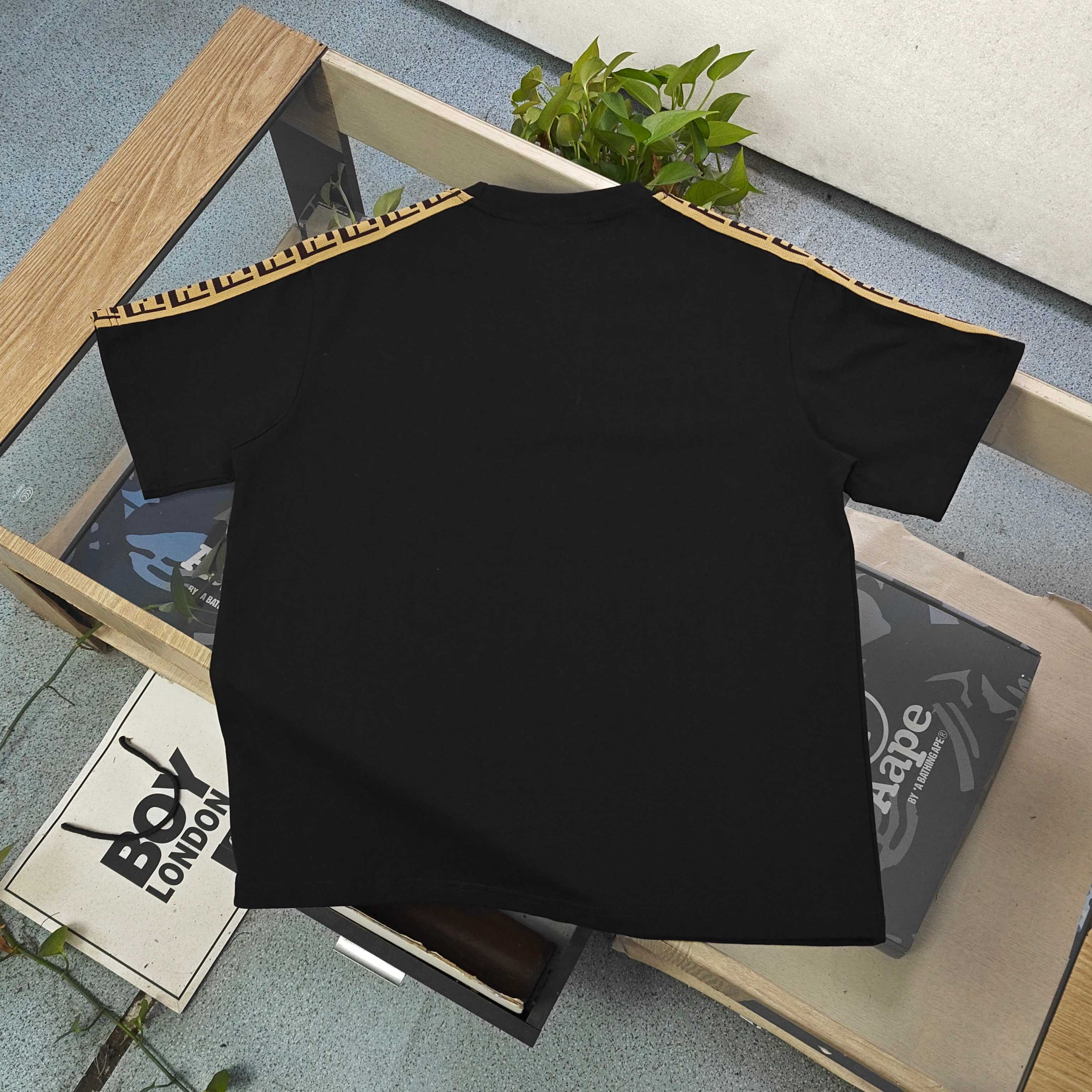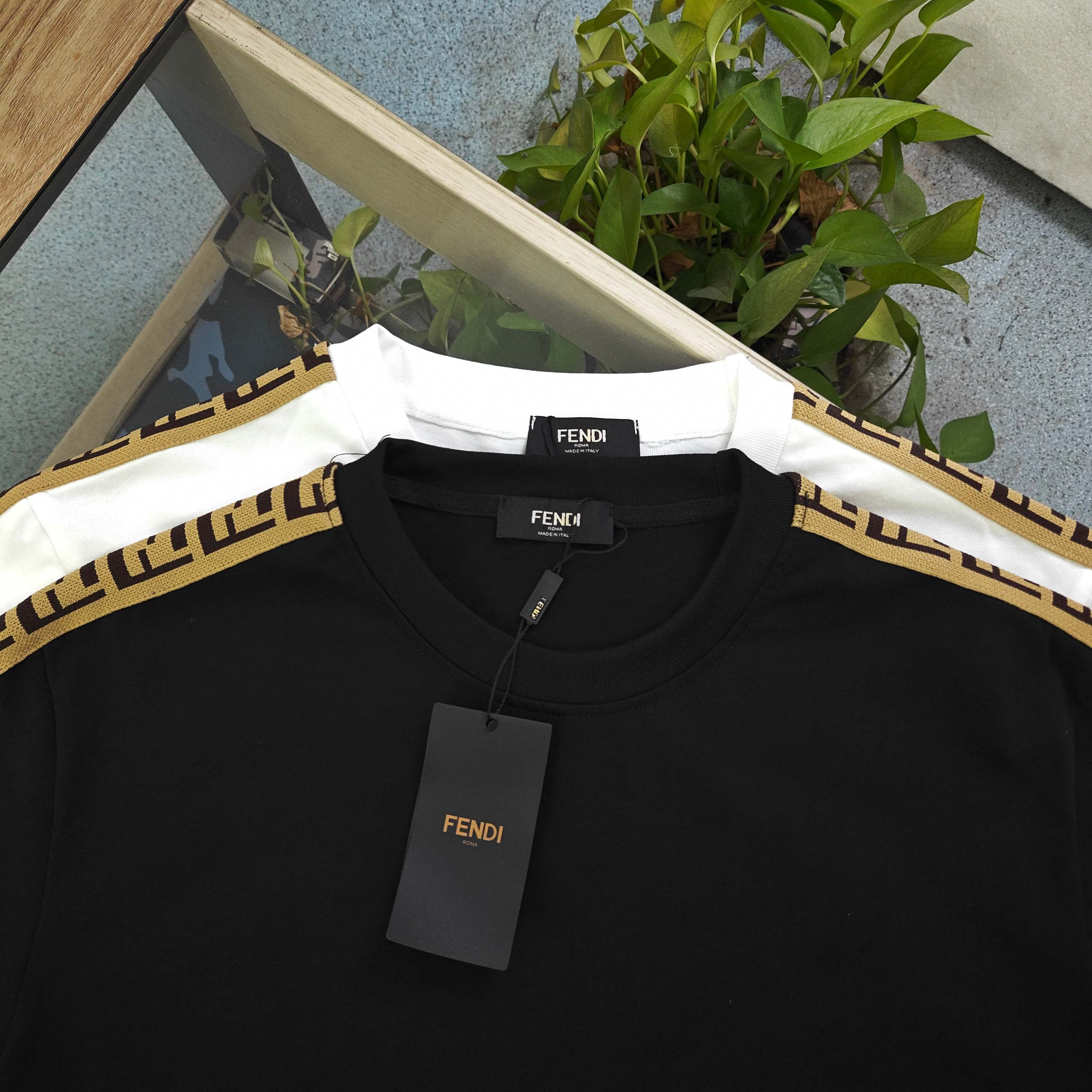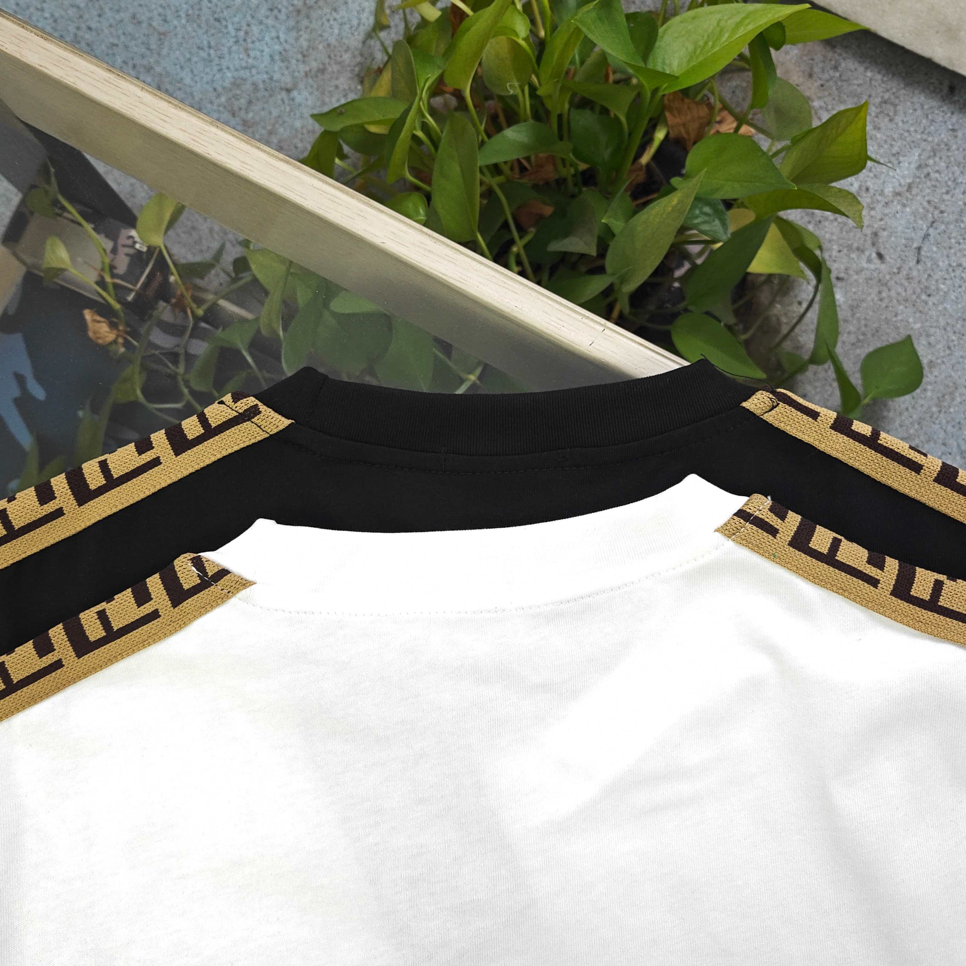2026新款Fendi芬迪经典肩部织带字母图案logo休闲情侣圆领短袖T恤 采用32支双纱精梳纯棉爽滑手感 纯棉不起球不起毛 面料厚度270克重 质量保证 定制面料 定制定染 包浆印刷环保不开裂 欢迎对比质量 男女同款