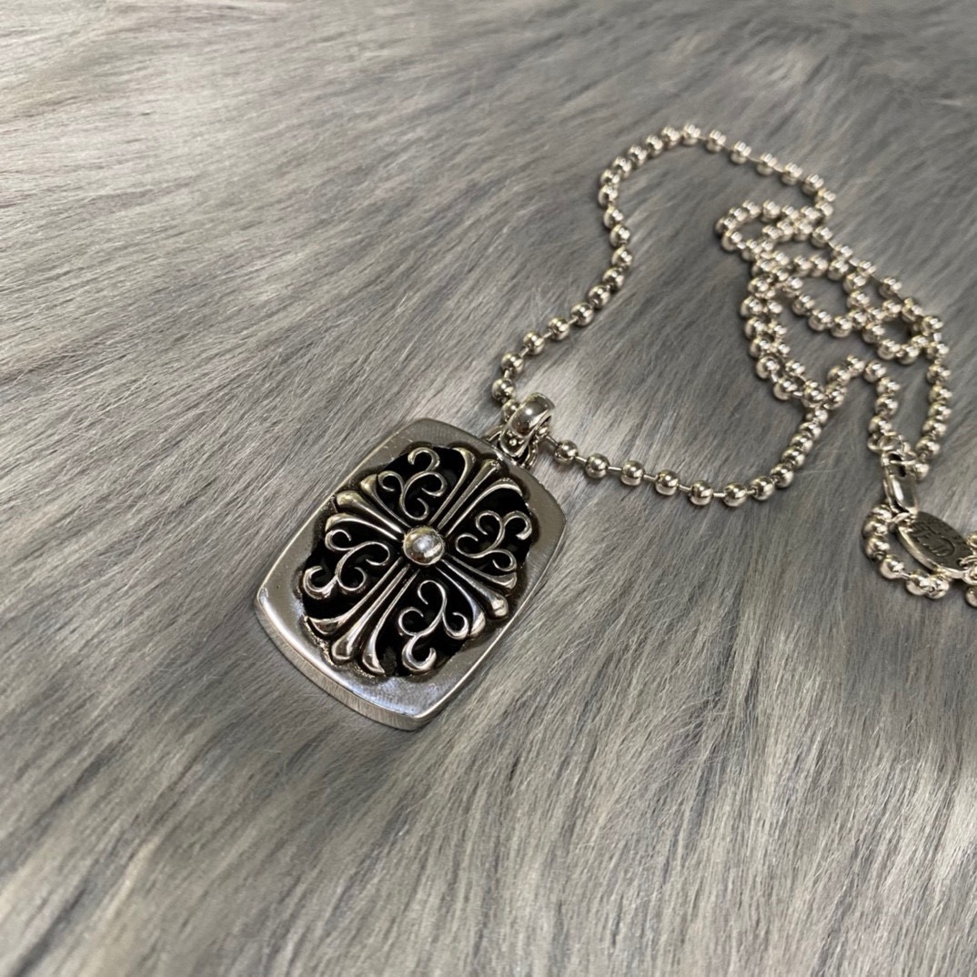 Chrome Hearts克罗心十字架宫廷花方块吊坠项链 配全套包装