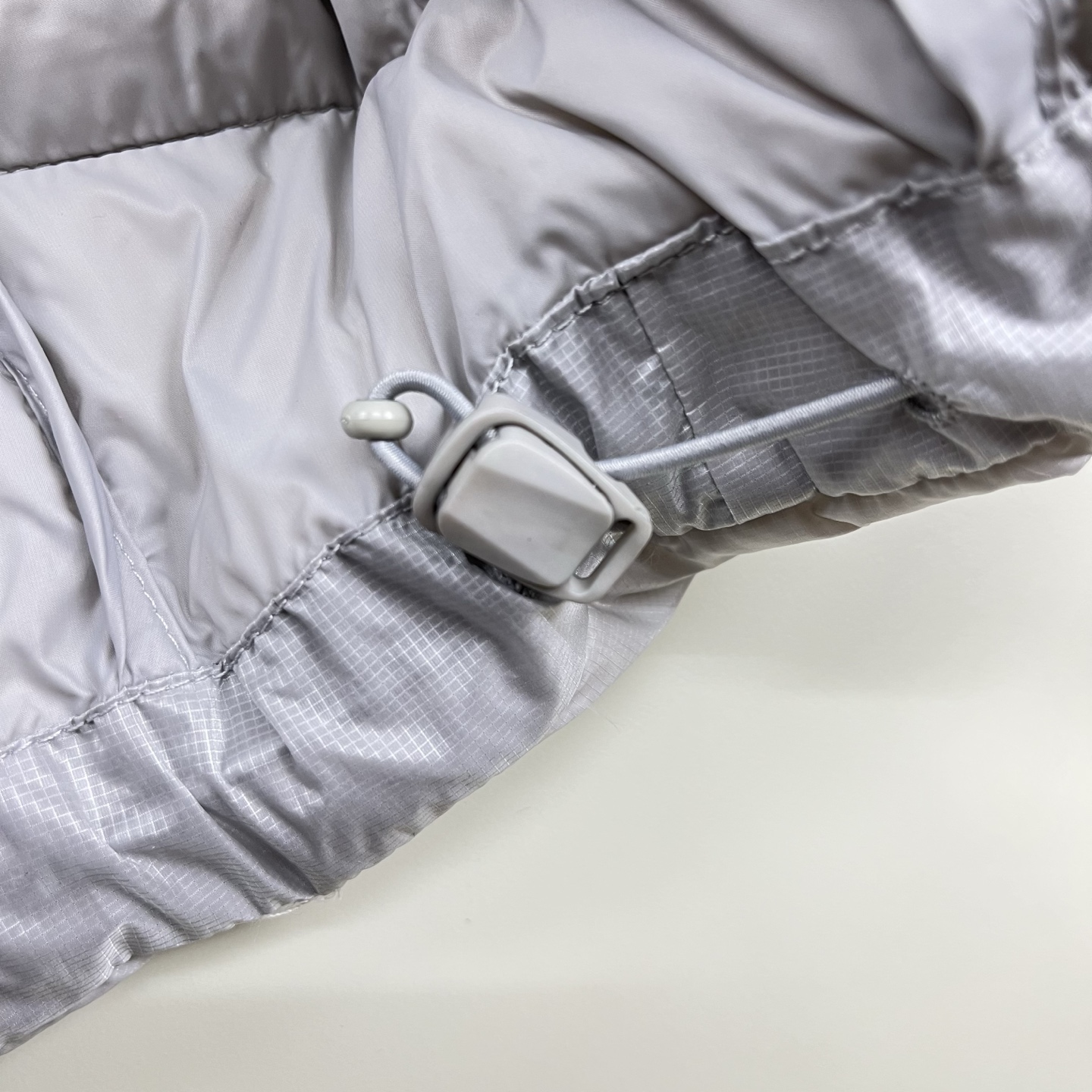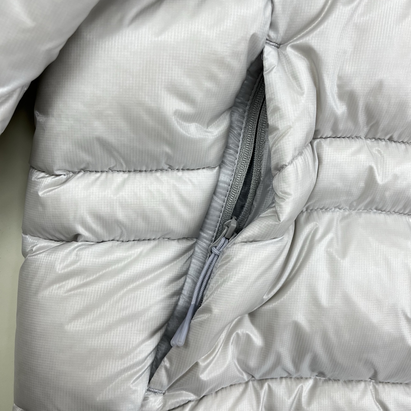 填充纯白鹅绒 面料定制定染7D细格纹 银青灰金属光泽面料