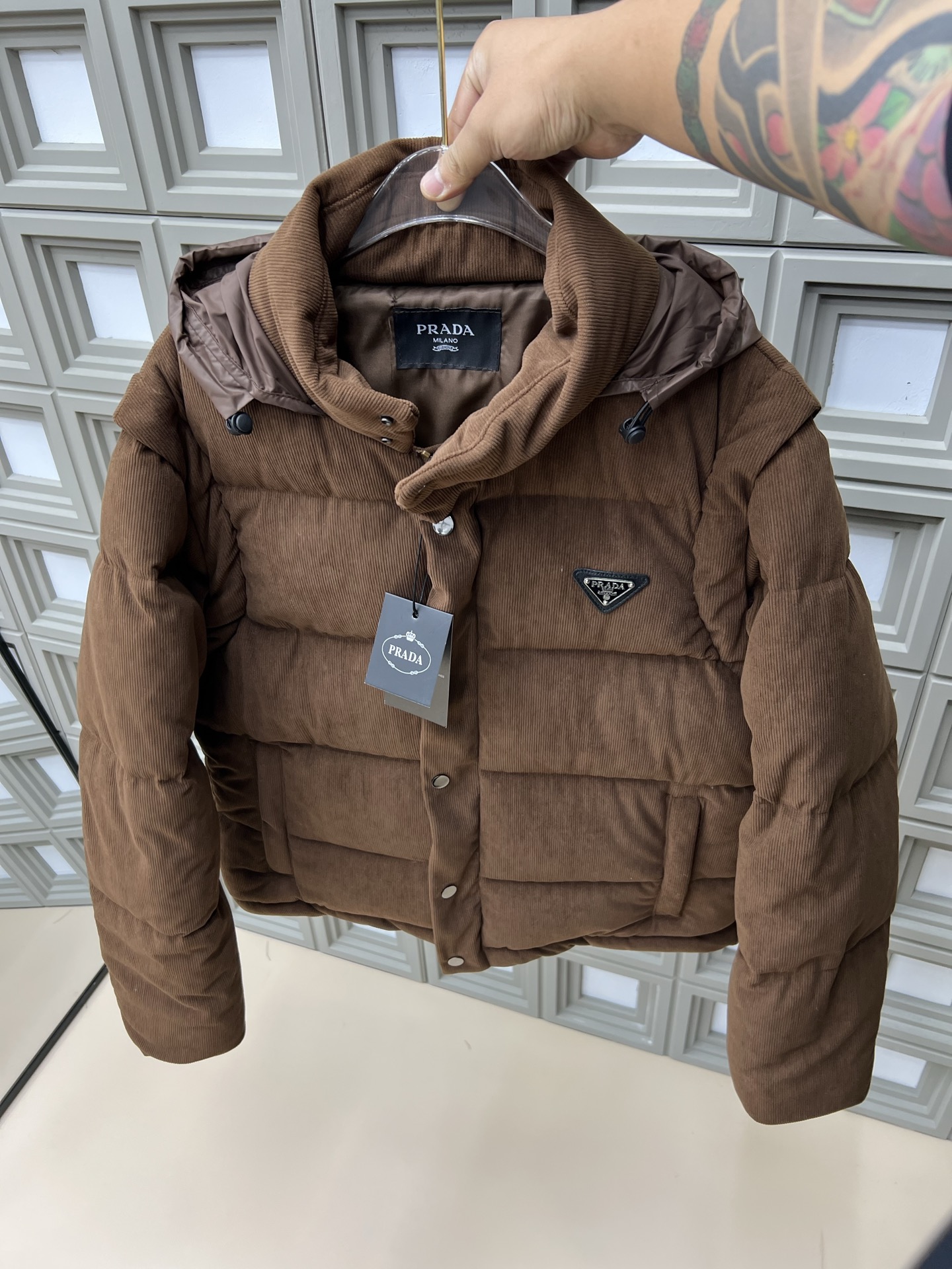 冬季新款条绒棉服L 4XL 拆袖隐藏帽