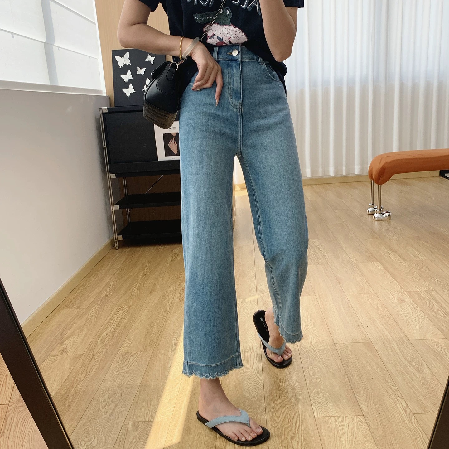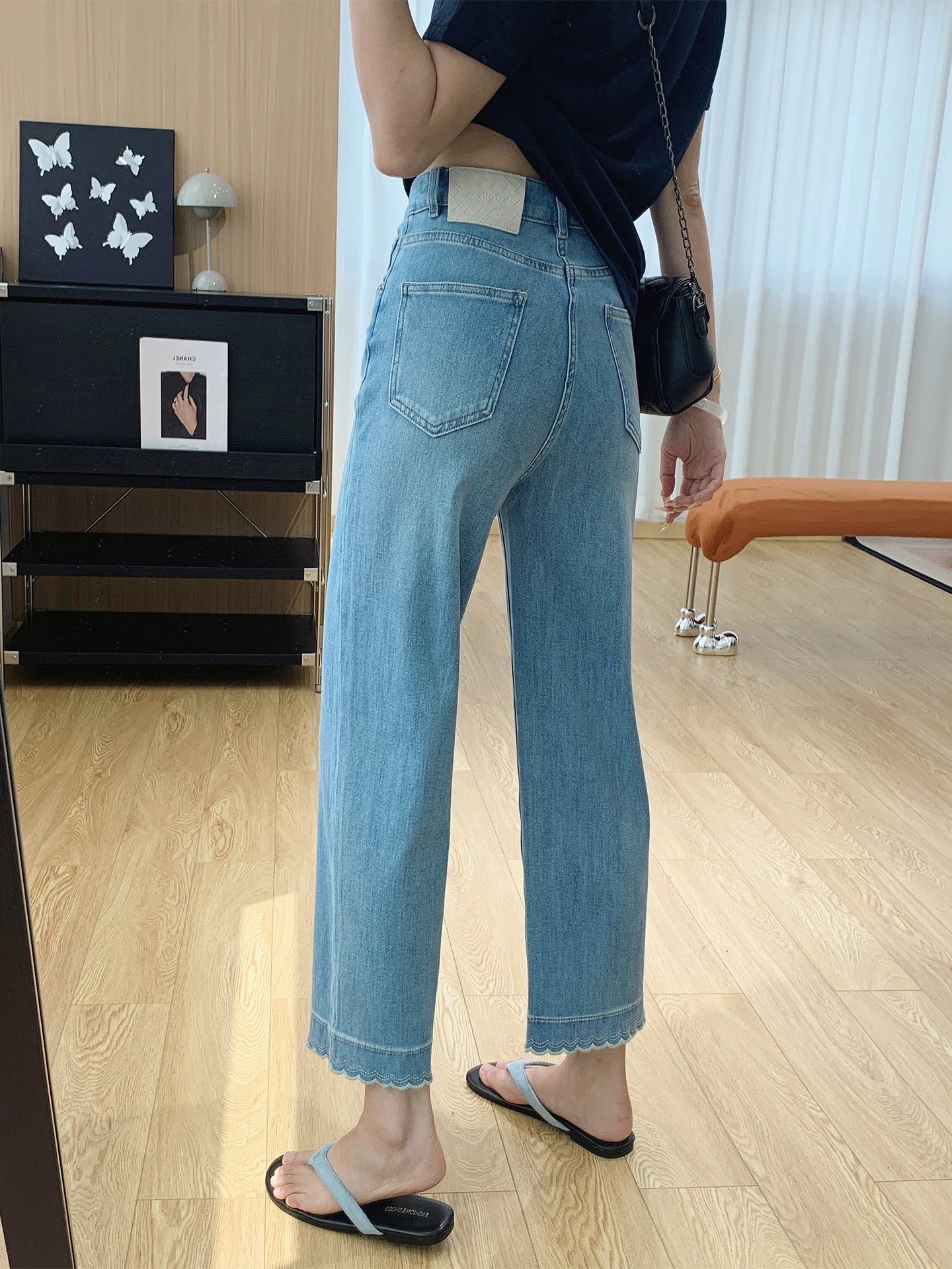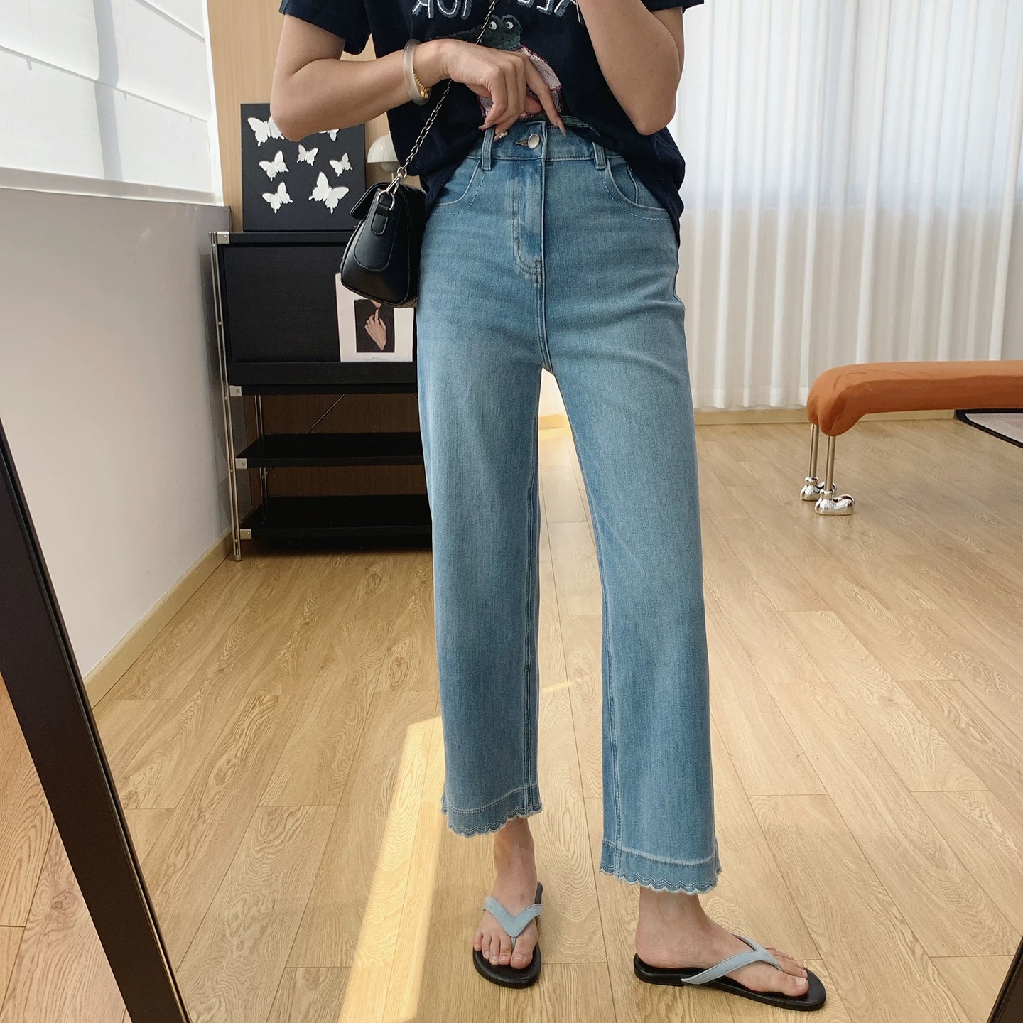 版型超好看 春夏刺绣花边九分牛仔裤女 显瘦显直莱赛尔混纺直筒裤 波浪刺绣花边九分直筒牛仔裤 温柔显shou 甜而不腻