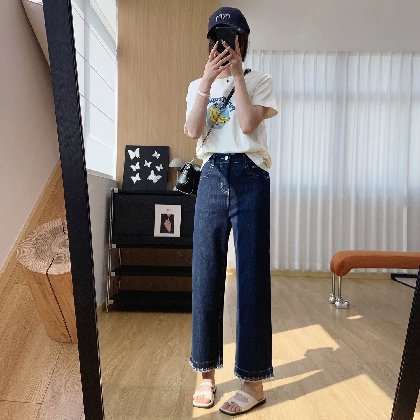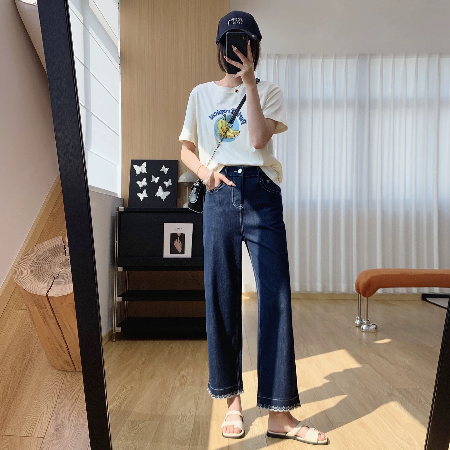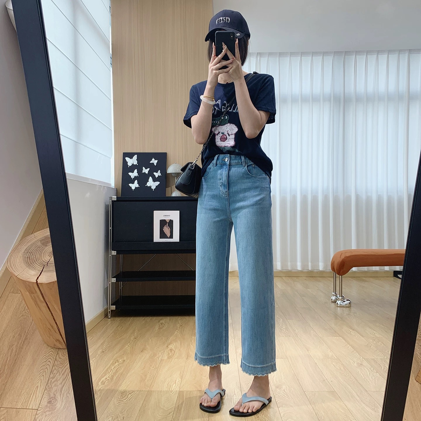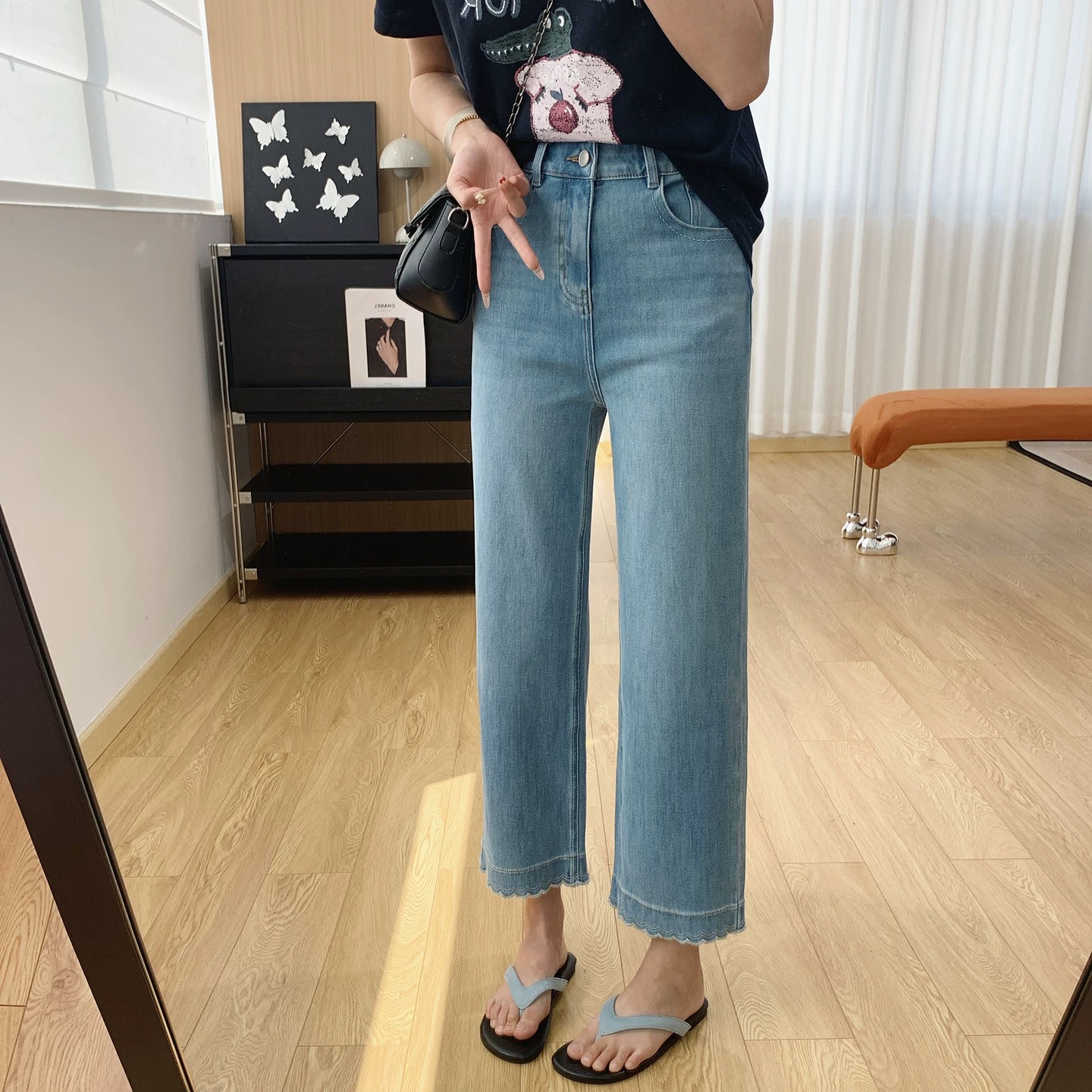 版型超好看 春夏刺绣花边九分牛仔裤女 显瘦显直莱赛尔混纺直筒裤 波浪刺绣花边九分直筒牛仔裤 温柔显shou 甜而不腻