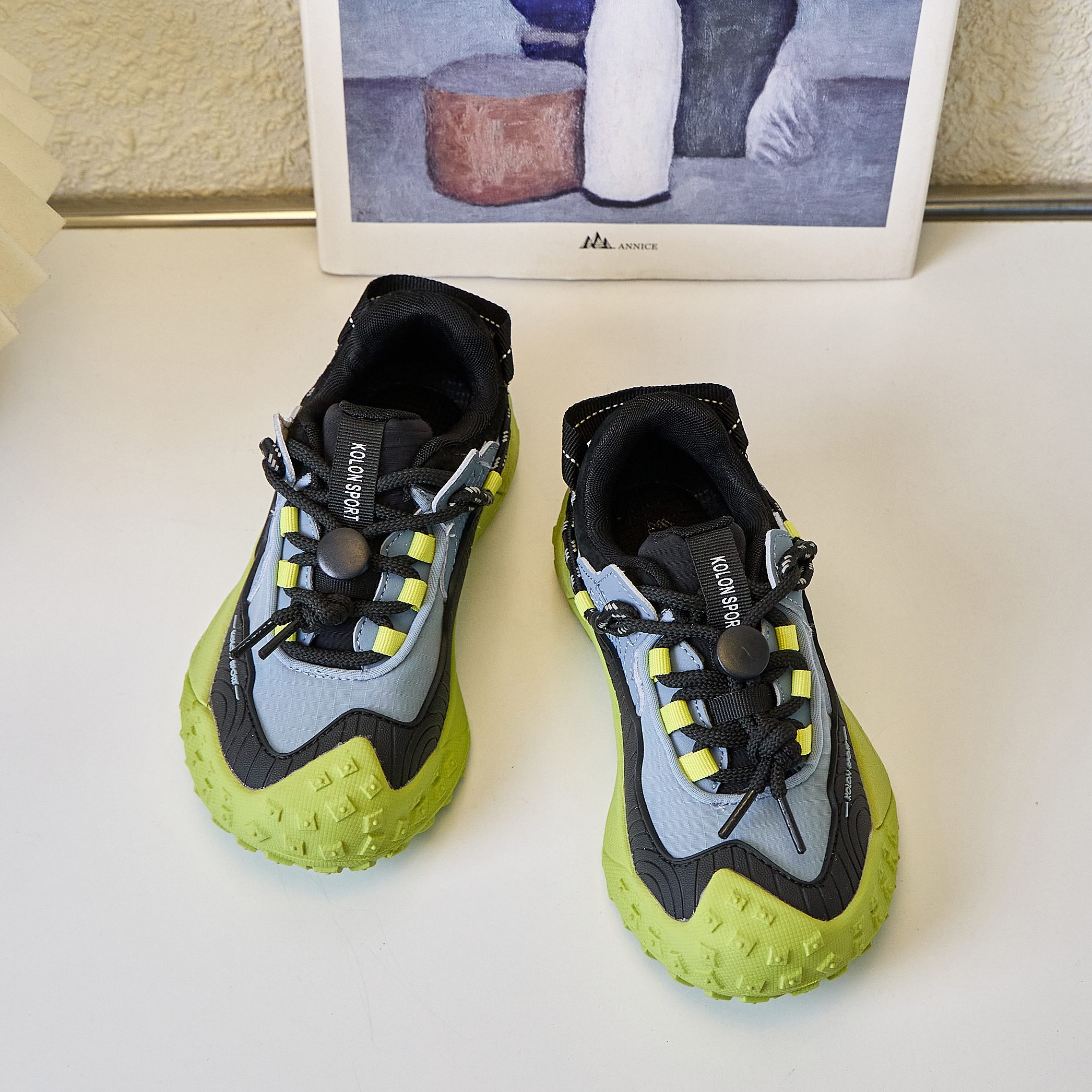 可隆厚底老爹鞋男女童松紧扣户外徒步百搭跑步鞋炸街走秀款童鞋