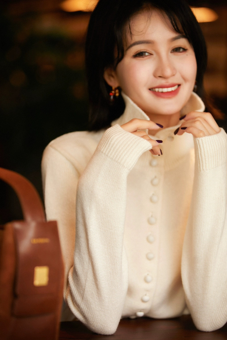 松软包扣立领针织毛衣开衫 柔软蓬松细腻 舒适包裹在柔软的针织中 天生松 弛慵懒 可休闲随性 也可以轻正式