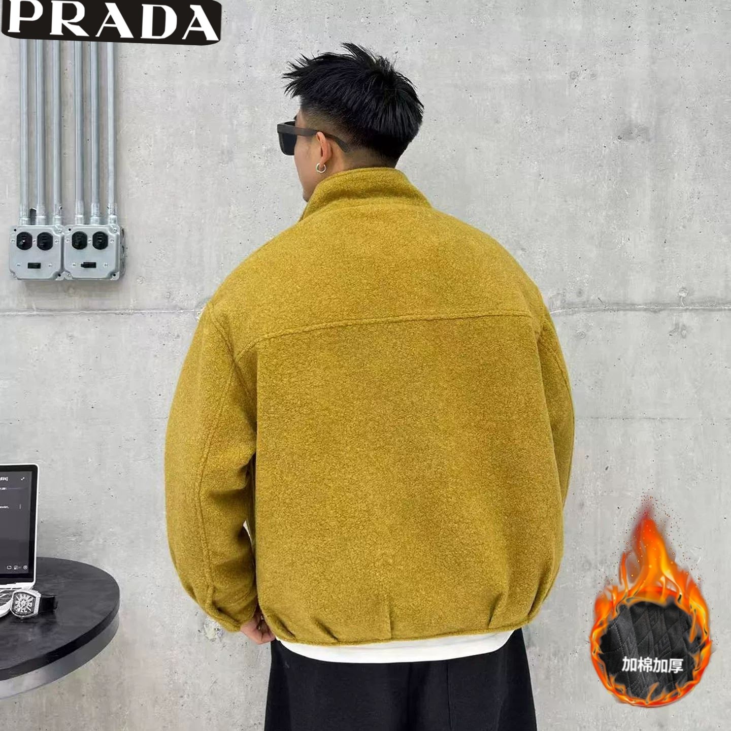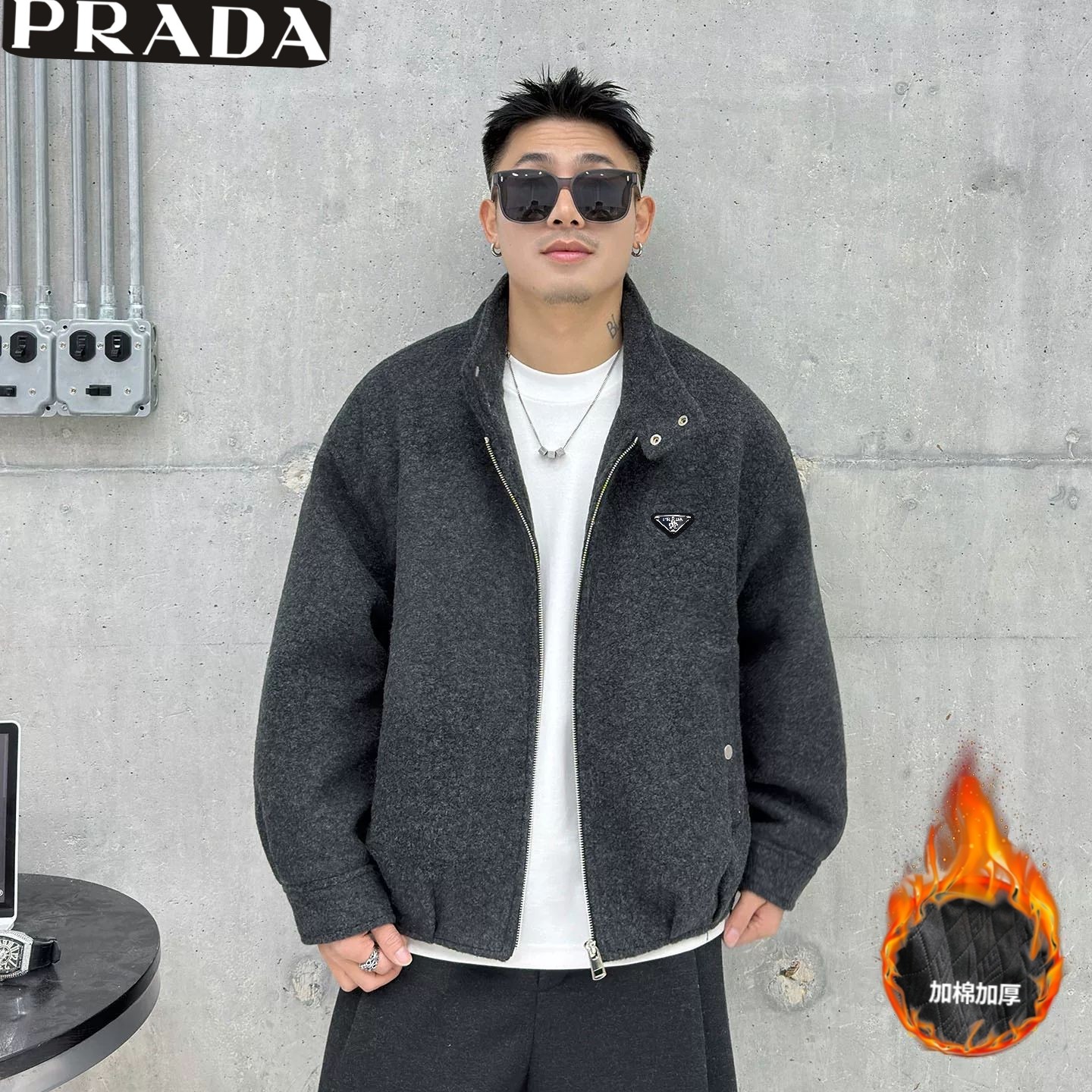 310226494 - 普拉达Prada冬季新款 男士高级感加棉加厚立领毛呢外套 男 428906