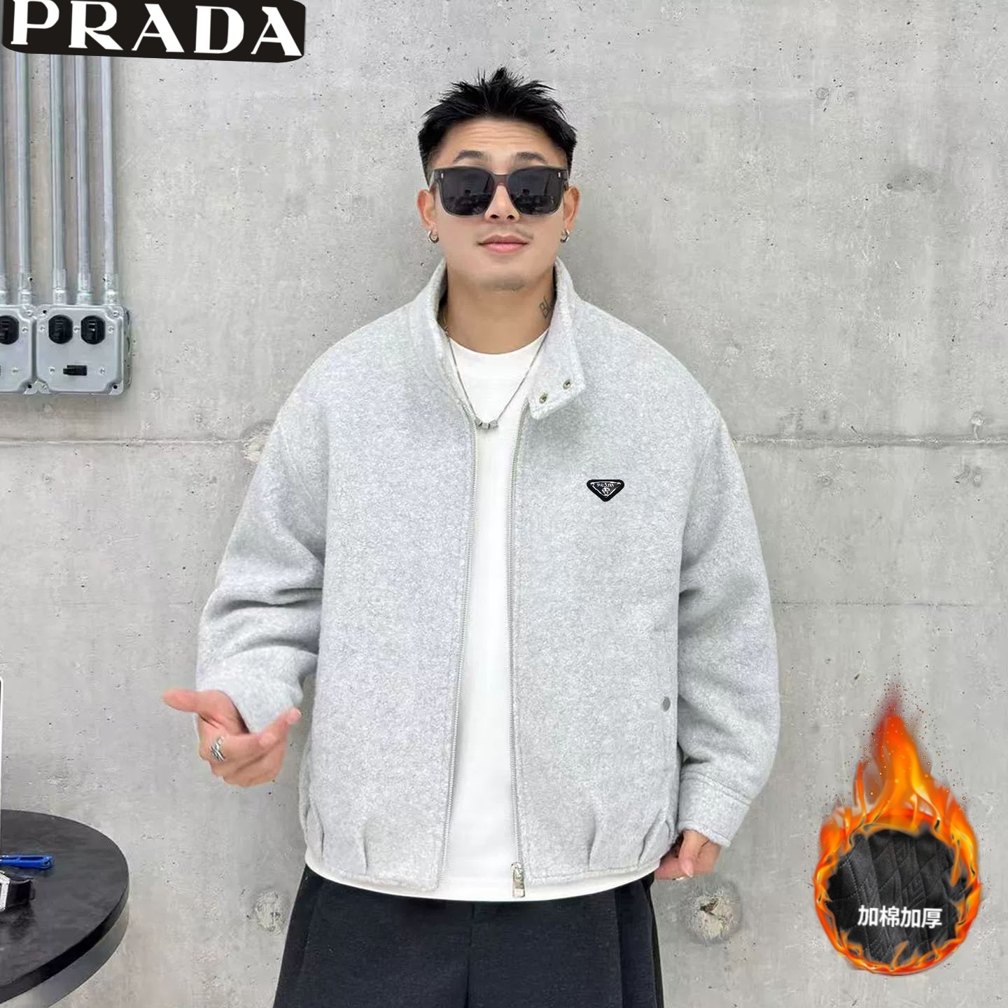 普拉达Prada冬季新款 男士高级感加棉加厚立领毛呢外套 男士毛衣厚夹克