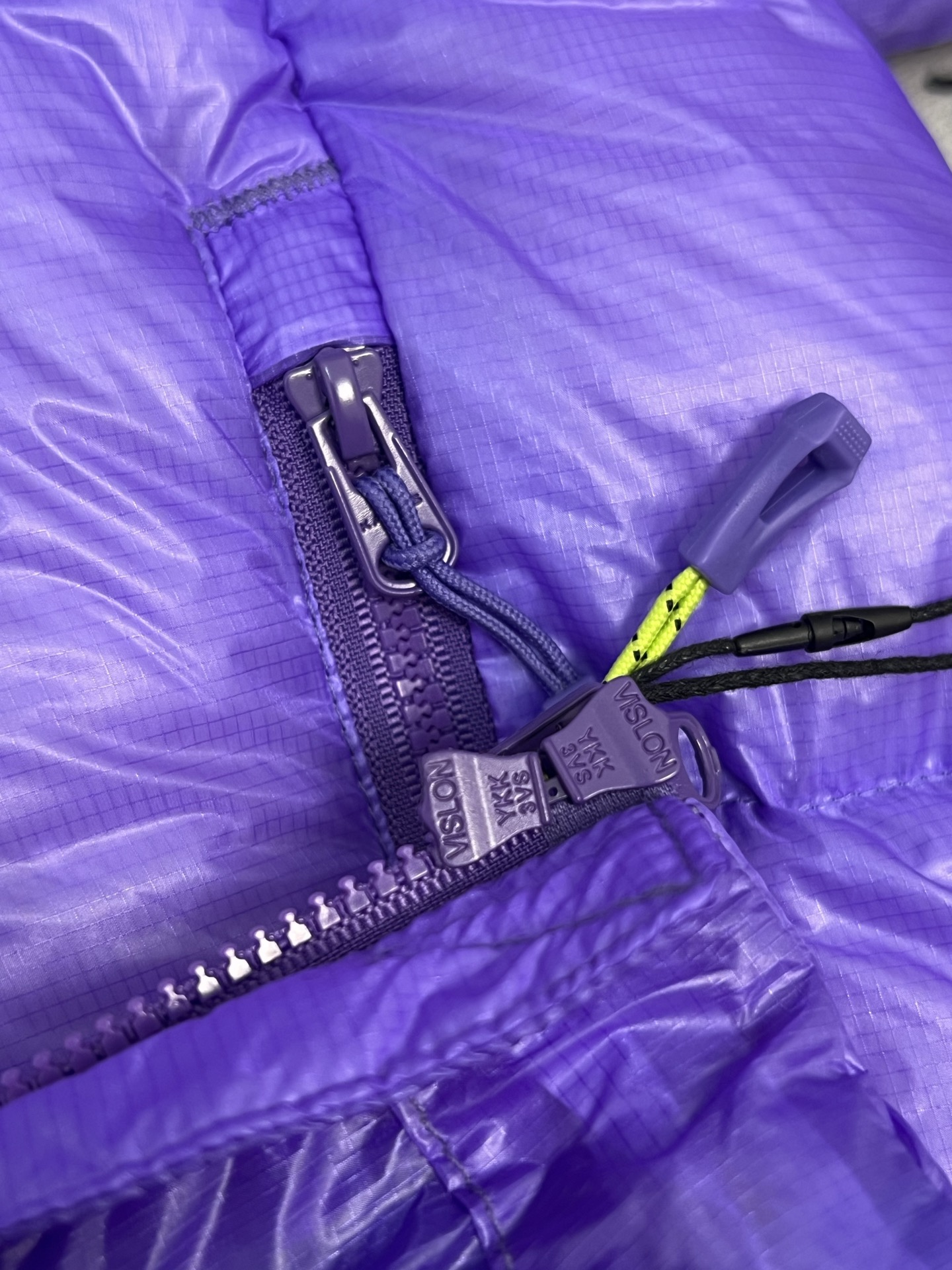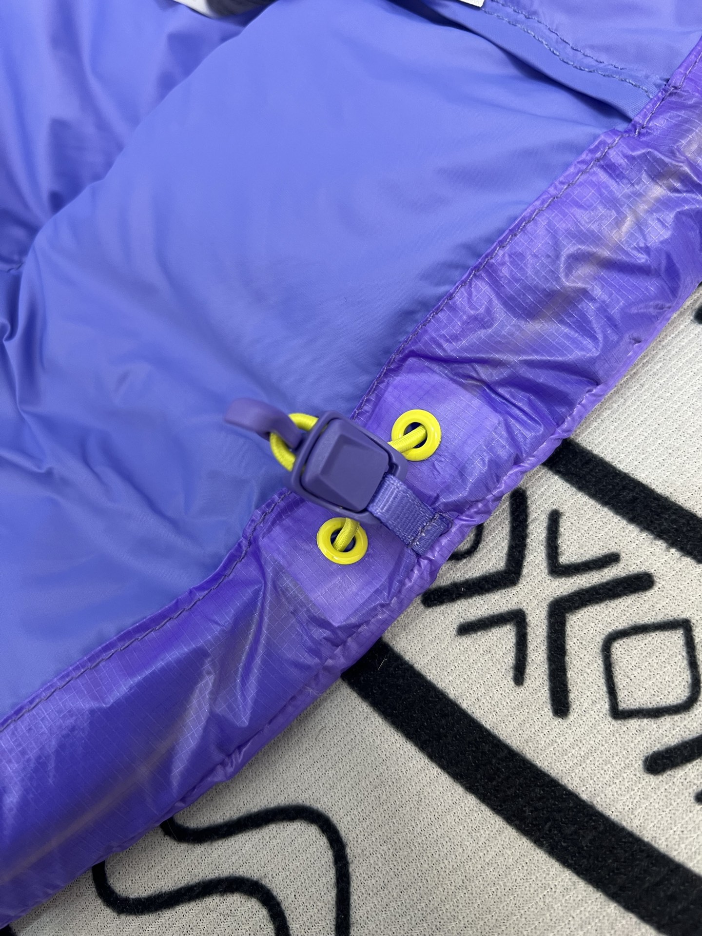 所有五金辅料均为定制定染色 整衣采用三种不同拉链头 内里口袋配特殊色拉链 帽子及下摆抽绳 帽子气眼 均攻克极高工艺难度 完美呈现
