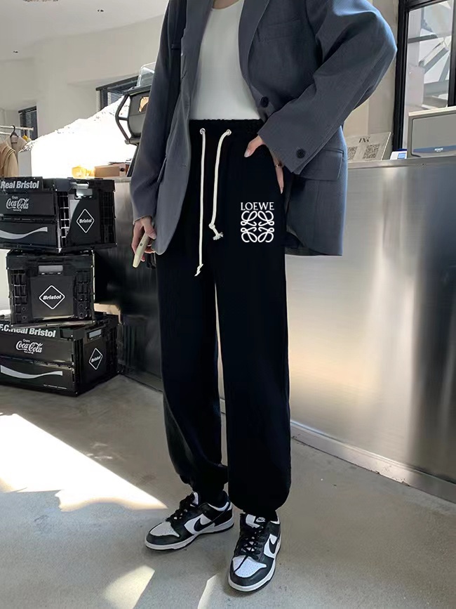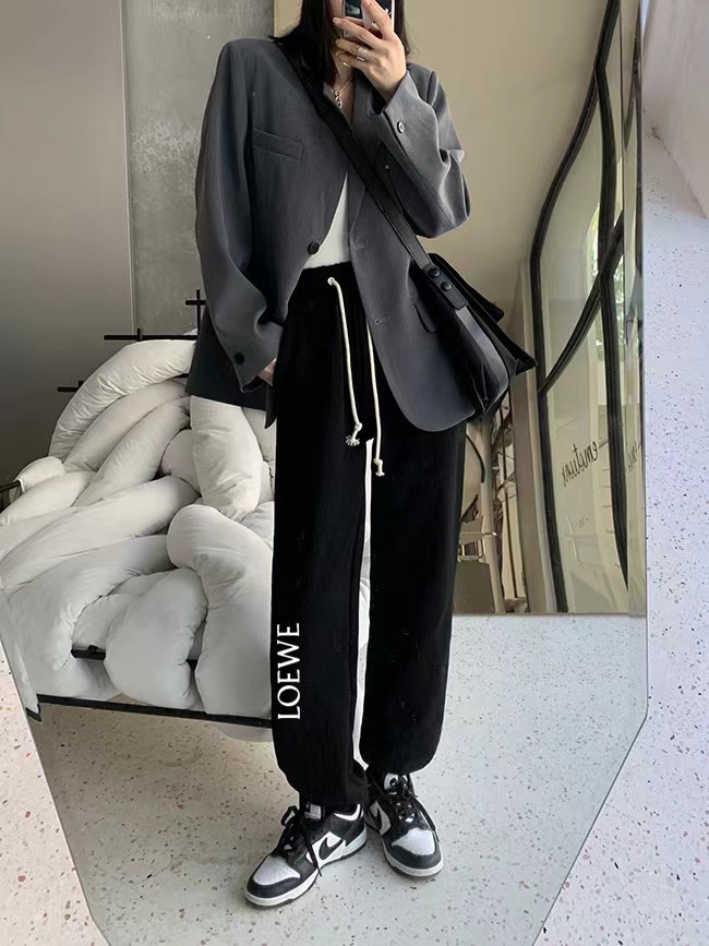 LOEWE 罗意威侧拼花型百搭宽松冬季加绒加厚卫裤束脚裤休闲裤