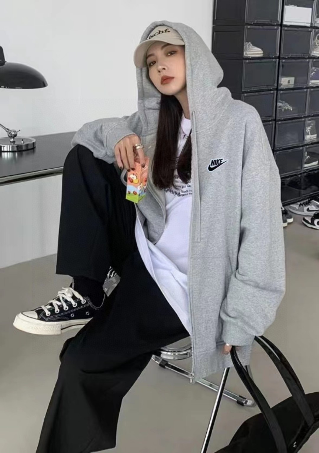 重磅刺绣 另有加绒版本 耐克Nike百搭落肩宽卫衣连帽华棉开衫外套