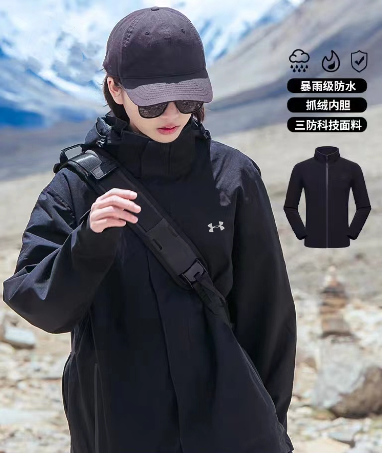 三合一 UA安德玛三合一冲锋衣 全新增加抓绒内胆 单穿 拆卸 抓绒内胆 保暖性极强