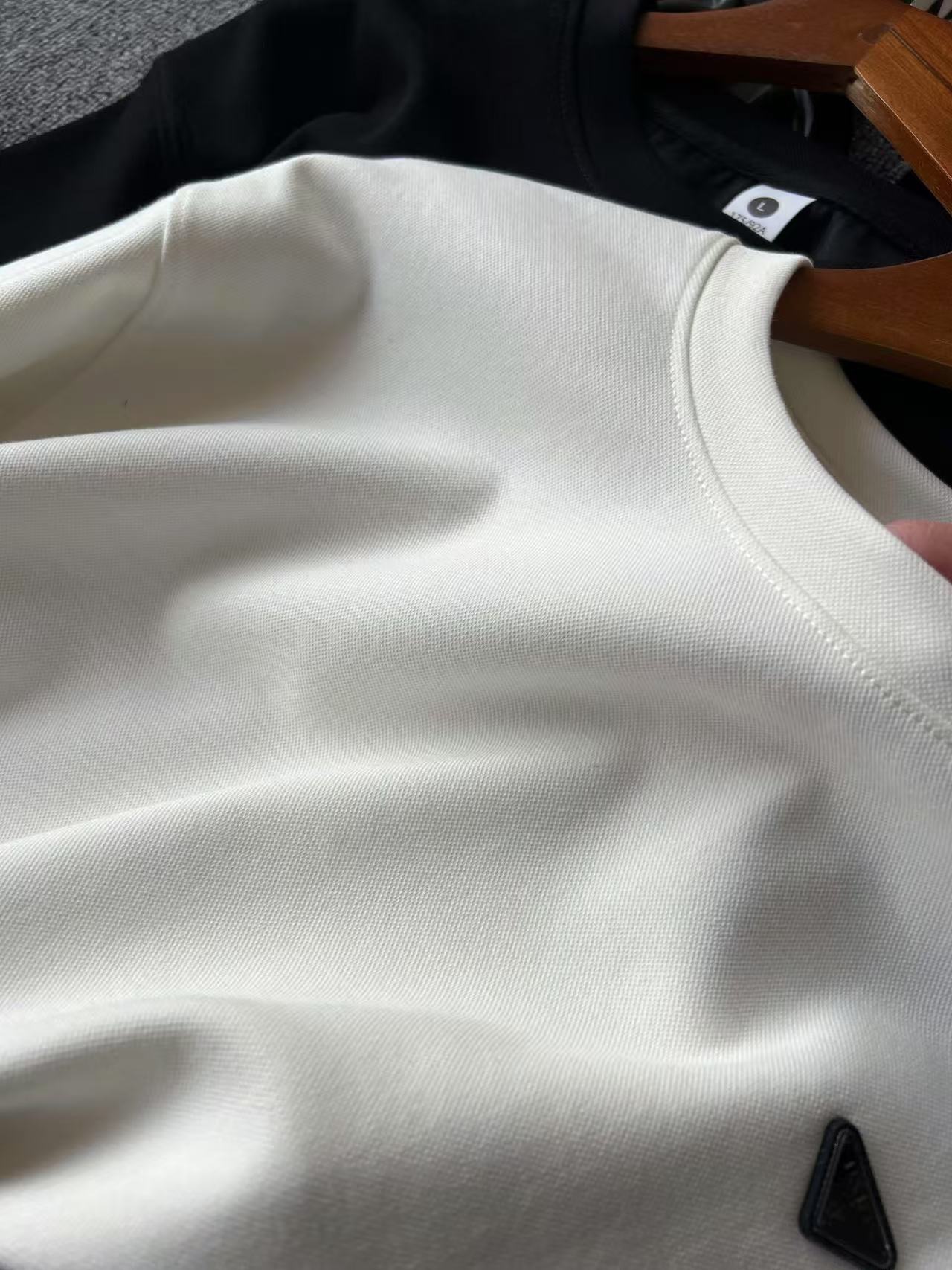 普拉达家今年最新研发60支340g空气棉面料 表层带蜂窝纺织肌理 内里牛奶丝处理 触感亲肤 上身舒服 垂感极好 整体视觉效果彰显专柜高奢质感