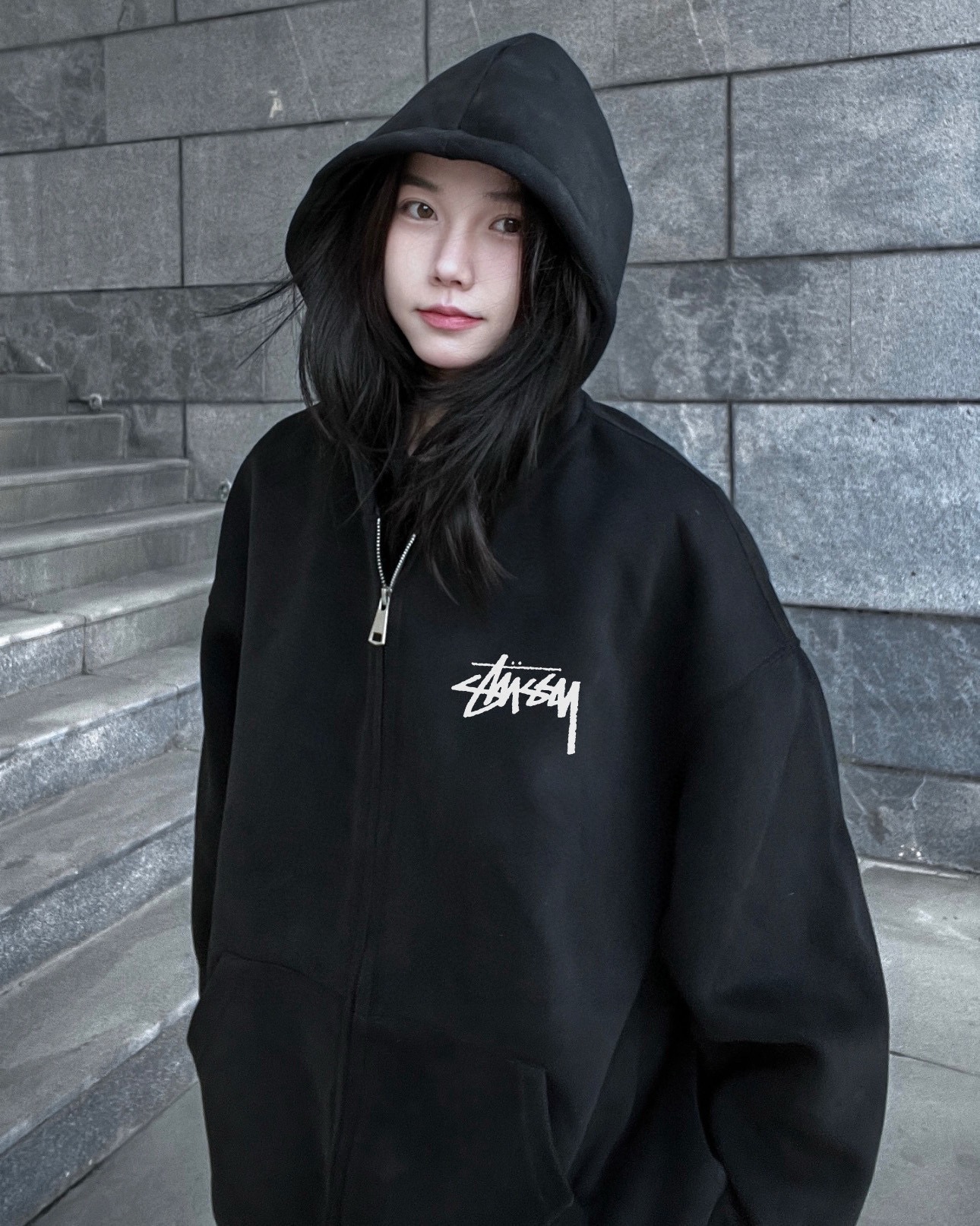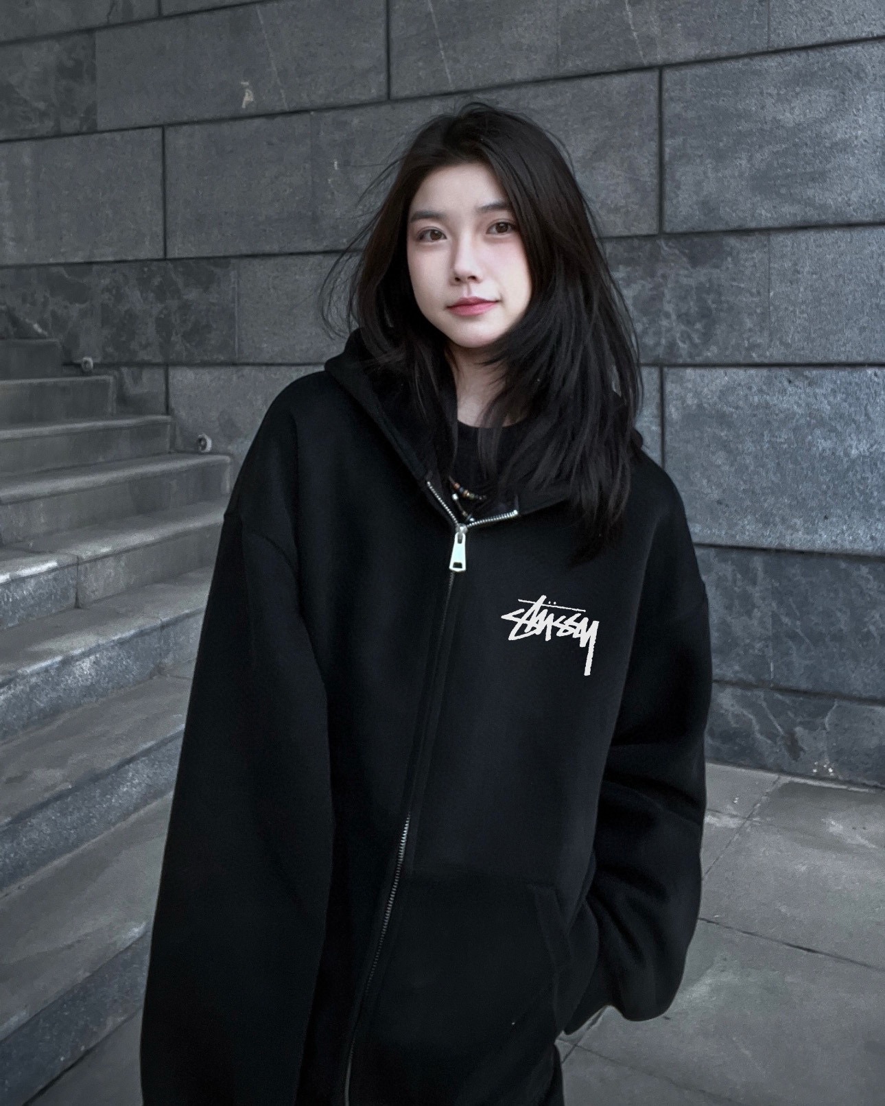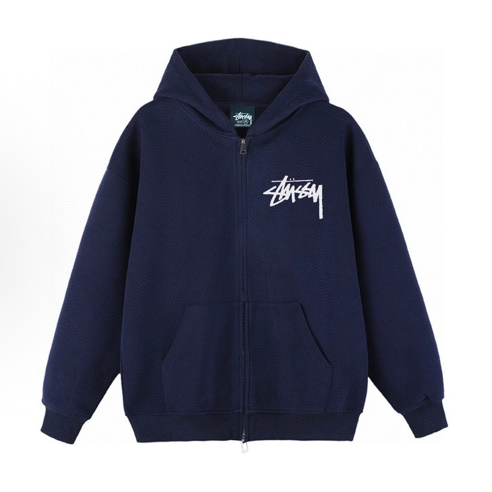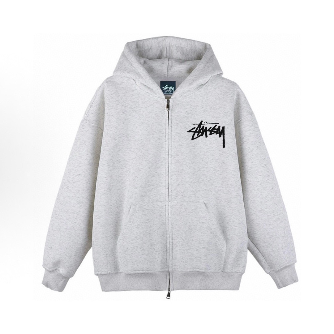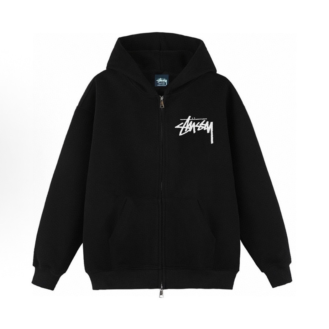 Stussy 斯图西小标经典款加绒加厚连帽开衫拉链卫衣外套