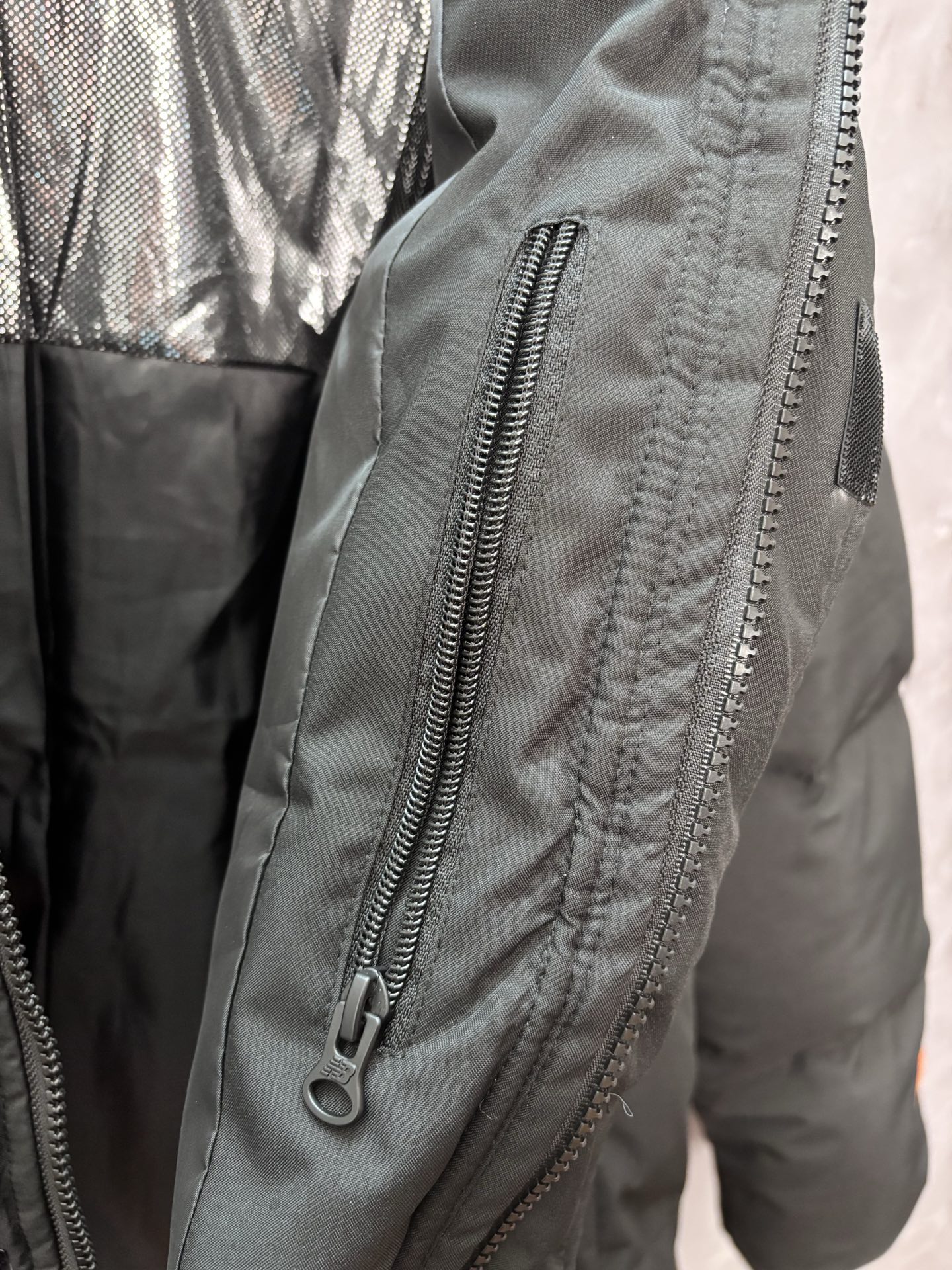 呼应衣摆的抽绳 上下360度防风锁温