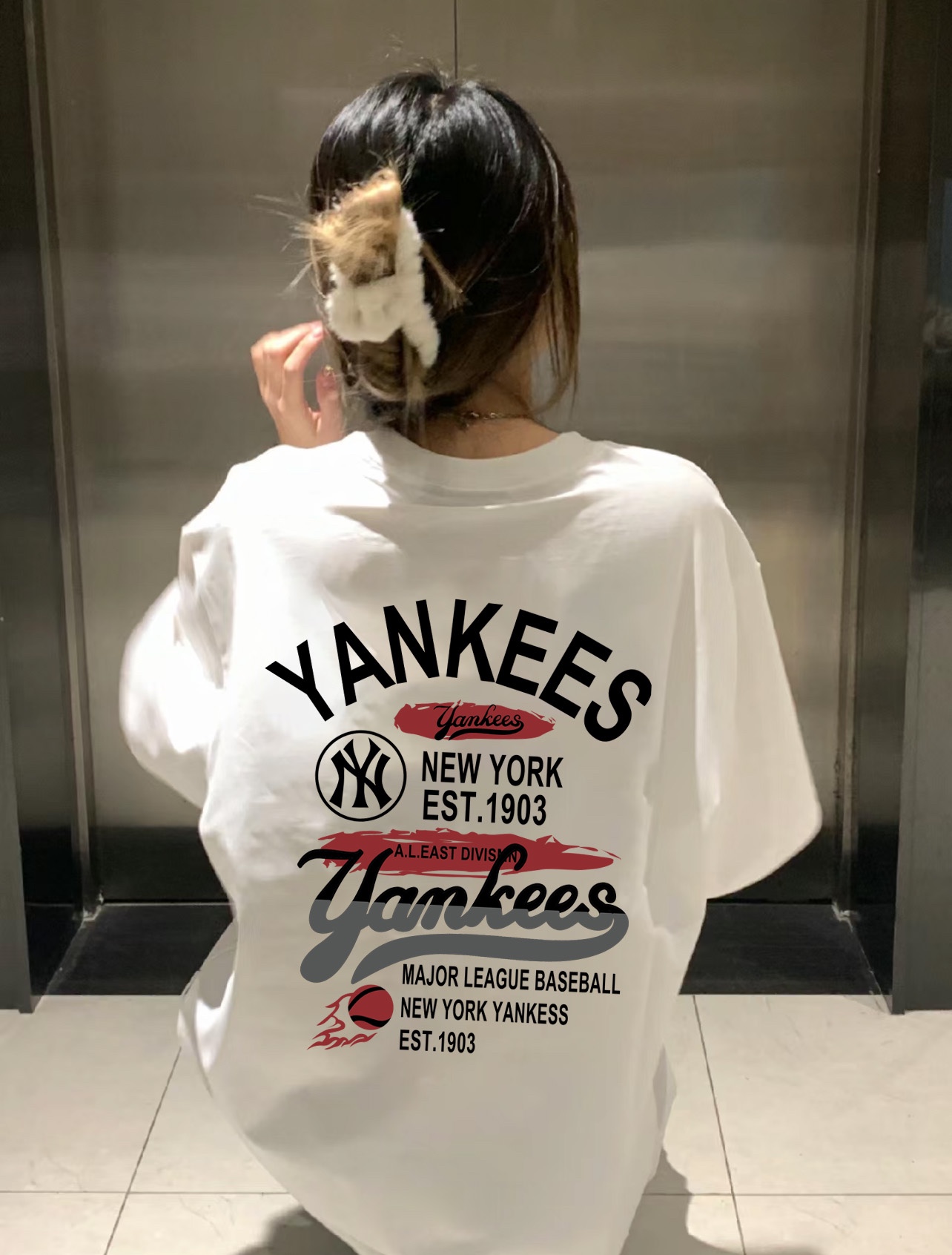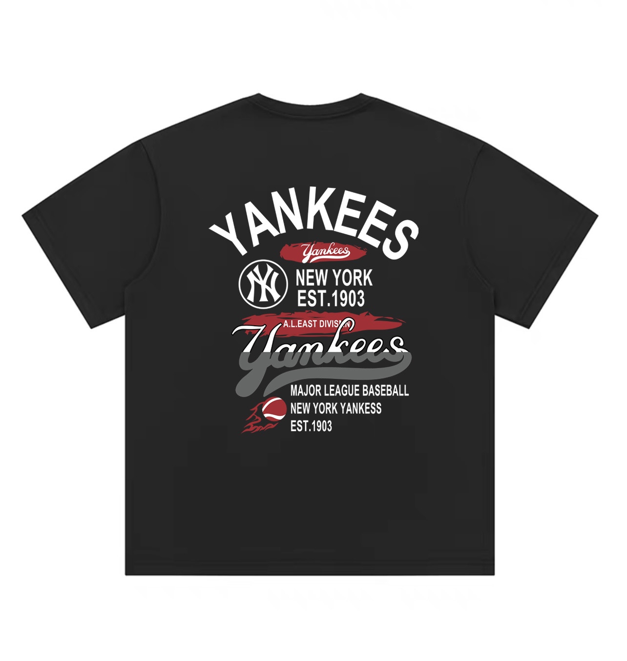 MLB YANKEES NY 纽约1903圆领短袖半袖T恤 面料采用260克纯棉双纱食毛面料 双线二本针压线 久洗不变形 原版定制三标 高端进口印花 随意水洗 情侣可穿 男女同款 黑色 白色 M XL M 衣长70肩宽51胸围112 L 衣长72 肩宽54胸围116 XL衣长74肩宽57胸围120