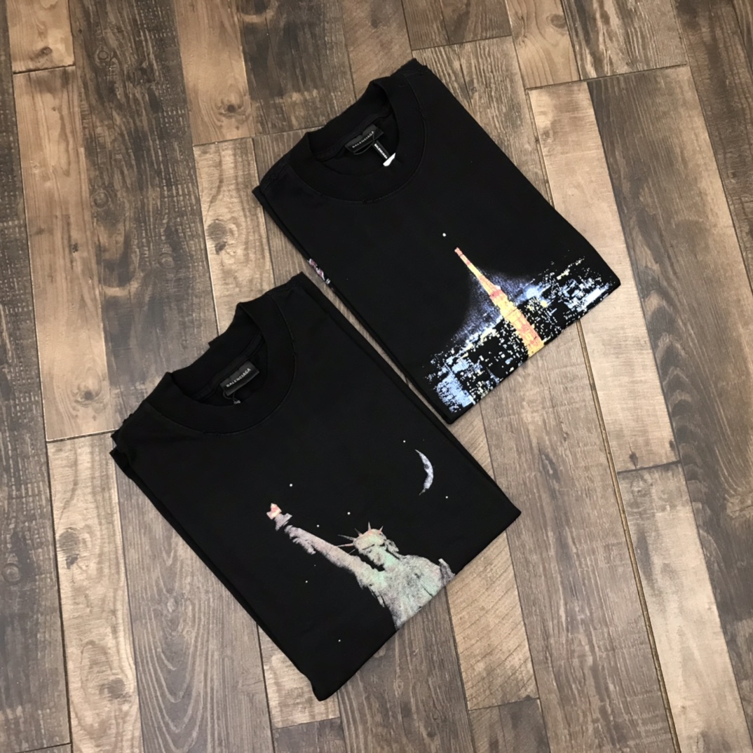 巴黎世家Balenciaga巴黎夜景铁塔T恤 梦魇