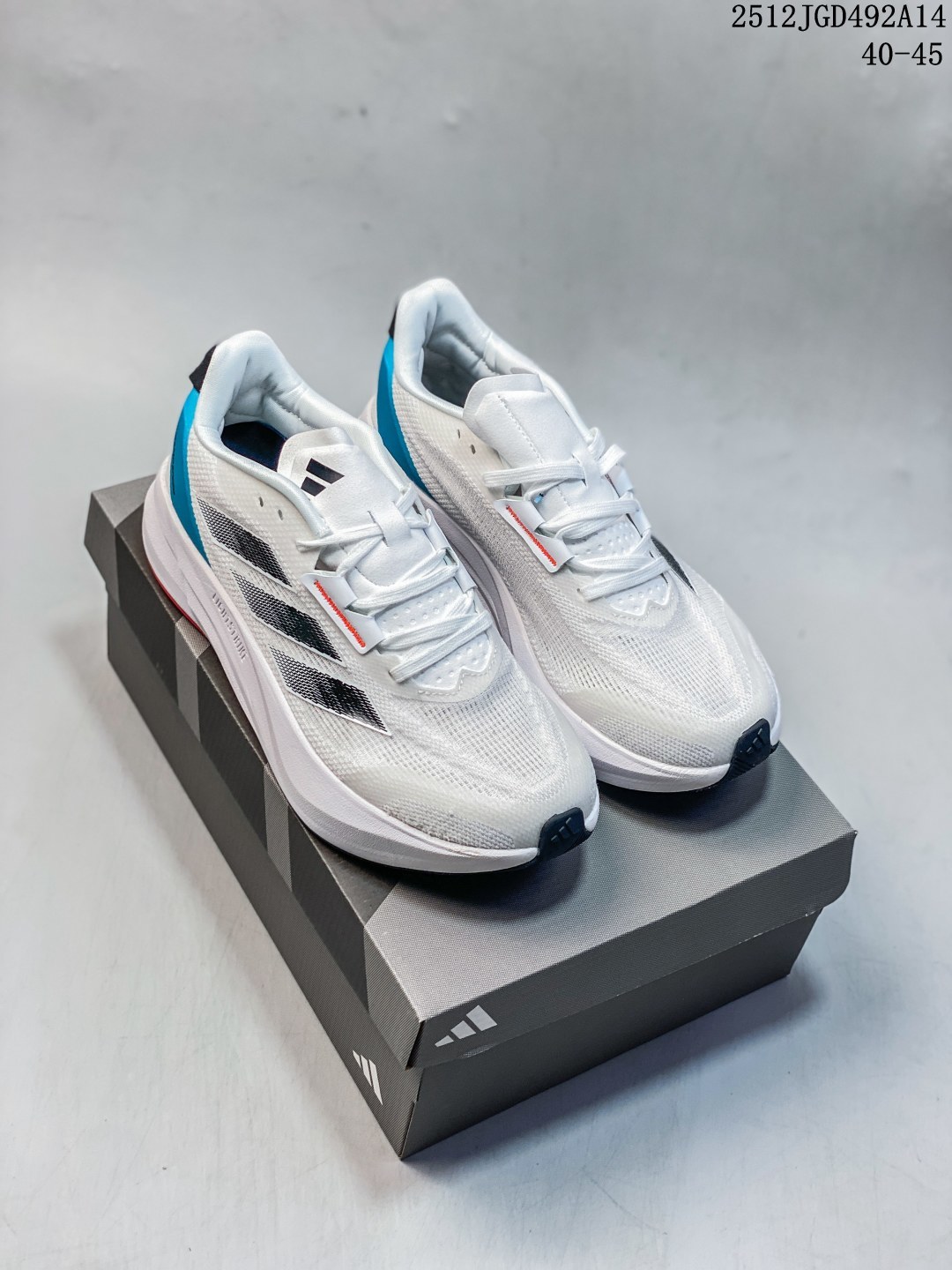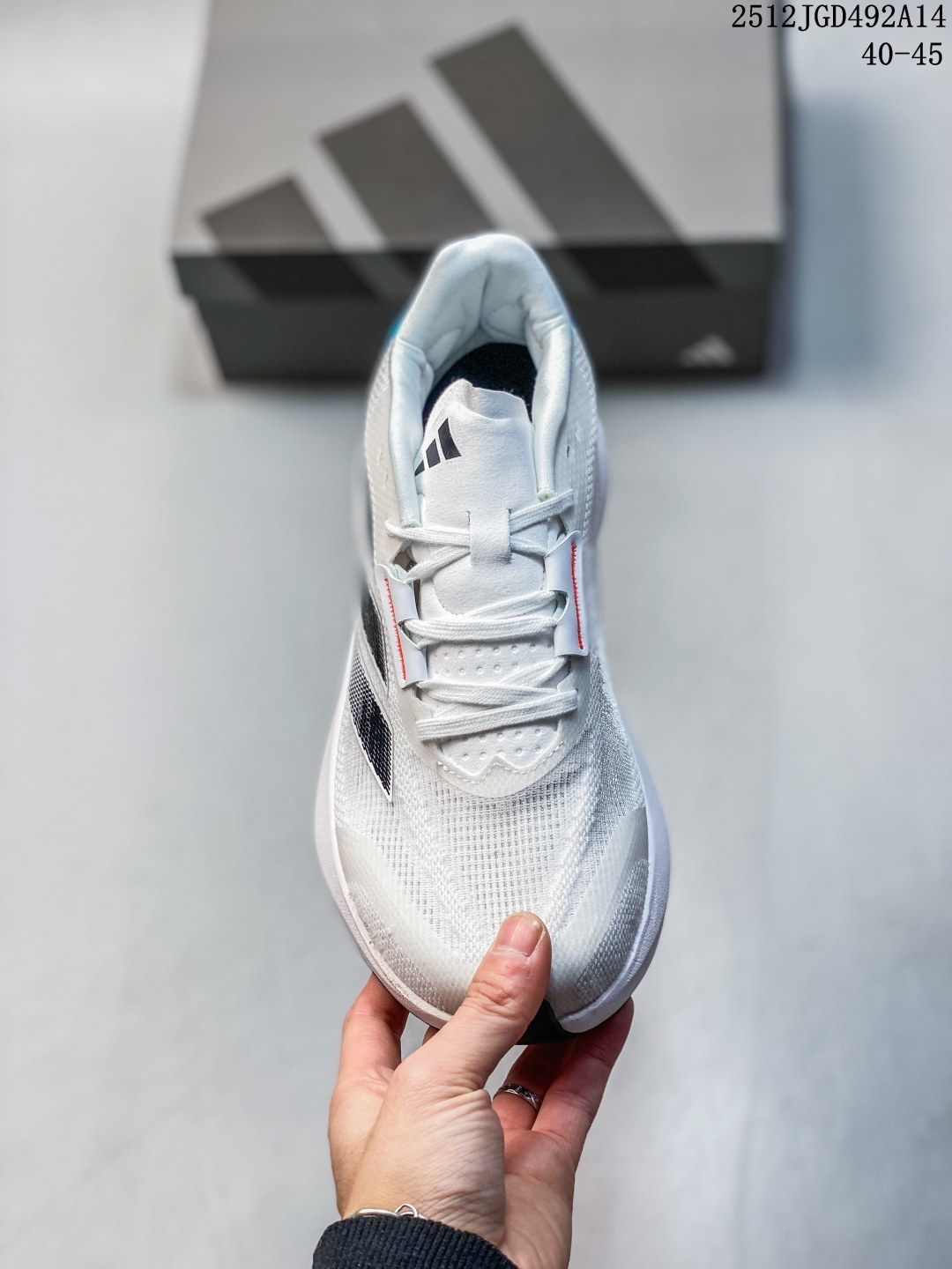 新品公司级 阿迪达斯 Adizero drive rc 竞训跑鞋 厚底增高运动鞋 简版波士顿跑步鞋 老爹鞋 全新中底材料 采用更轻 更回弹的新材料 提升跑步时的能量反馈和舒适度 改进缓震系统 优化缓震结构 提供更精准的落地支撑和减少运动伤害的风险 流线型鞋身 采用更贴合脚型的流线型设计 减少空气阻力 提升跑步效率 透气材料 引入更先进的透气网眼材料 保持脚部干爽 适合长时间运动 更多配色选择 推出多种新配色 满足不同消费者的个性化需求 可持续材料 使用更多回收和可再生材料 减少环境影响 包装减塑 简化包装 减少塑料使用 倡导绿色消费 抓地力增强 采用新型外底材料 提升在多种地面上的抓地力和稳定性 重量减轻 通过材料优化和结构精简 进一步减轻鞋身重量 提升跑步体验