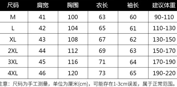 尺码 M 4XL