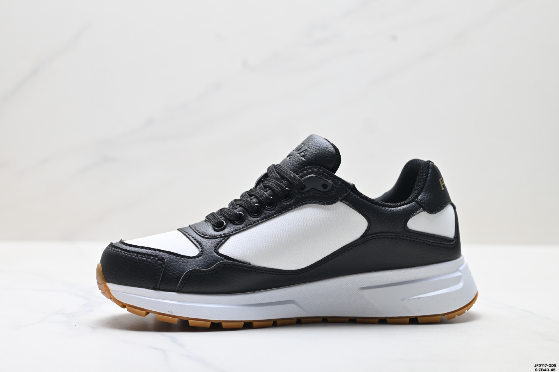 鞋面采用皮革材质制作 鞋侧饰有珐琅三角形徽标 耐磨橡胶材质制作鞋底